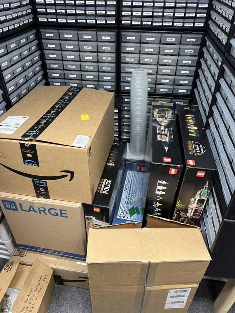 I have a bunch of legos I am looking to get rid of as a lot. I still have some of them listed on ebay so the things might change from the pictures. Almost all are new in box. There are a couple of sets where the minifigs have been removed. I have a sheet that has the the up to date inventory for the sets. I bought all to start a brinklink store with my kids a few years years ago. We never opened the store and my kids lost interest and have gotten older now and I don't have time for them. All the parts are sorted and brand new pulled from sets and the pab wall and are currently in my unopened Bricklink store. Brickset value on the sets is $23975, minus the opened ones (I did not include them). Parts are set to 6mo sales average valued at $5775 (no sets listed on bricklink). The parts bins cost me almost $4000. Total current value is $33750. I'm looking to get about half of that. Taking a big loss, but I would like to move these all together. This would be great for someone looking to start a store, or add to an existing store.