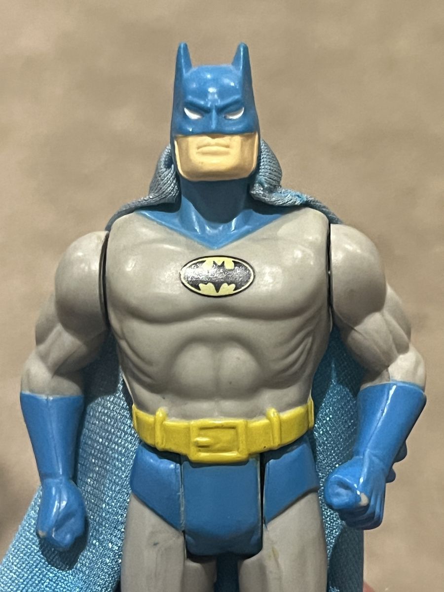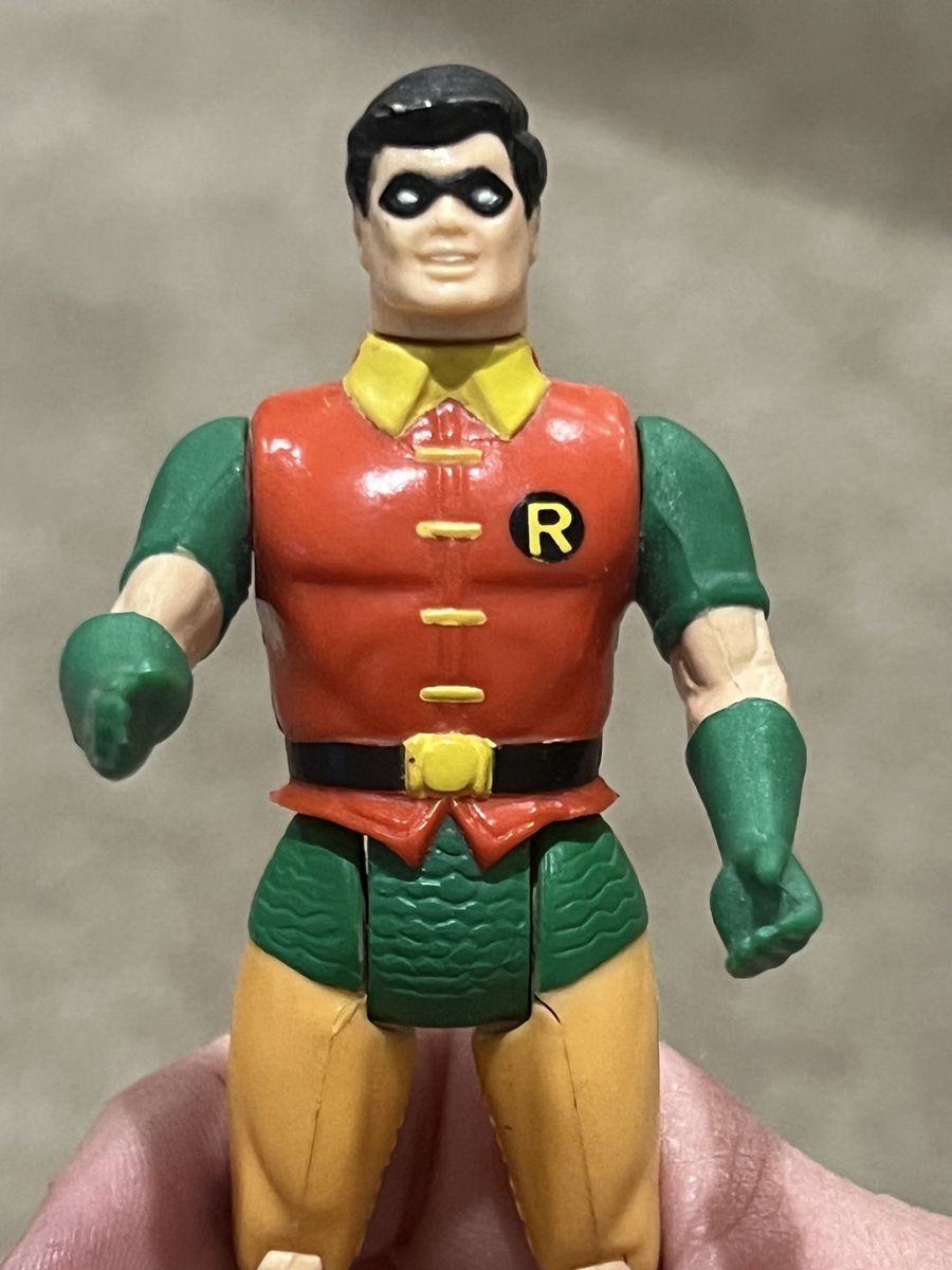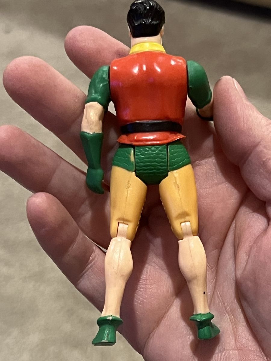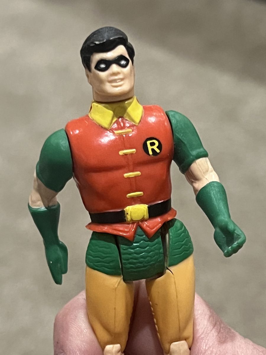 VenmoThe Kenner DC Super Powers Batman and Robin 1984 Action Figure Pair is a vintage collectible set from the Batman and Robin TV show. The 5-inch plastic Batman comes with their original cape and is in great condition with scuffs on the knuckles, as you’d except from an action hero. 4.5 inch Robin has super toned calves but is missing his cape. His karate action arm works when his leg is pressed. See photos for condition. Made by Warner Bros. Animation in 1984, these figures are a must-have for fans of classic Batman and Robin memorabilia. Pick up in Draper. Cash or Venmo. $35.