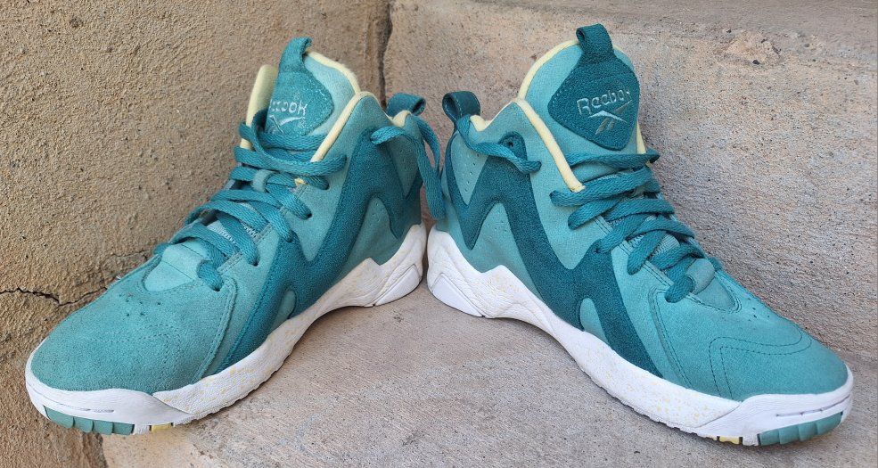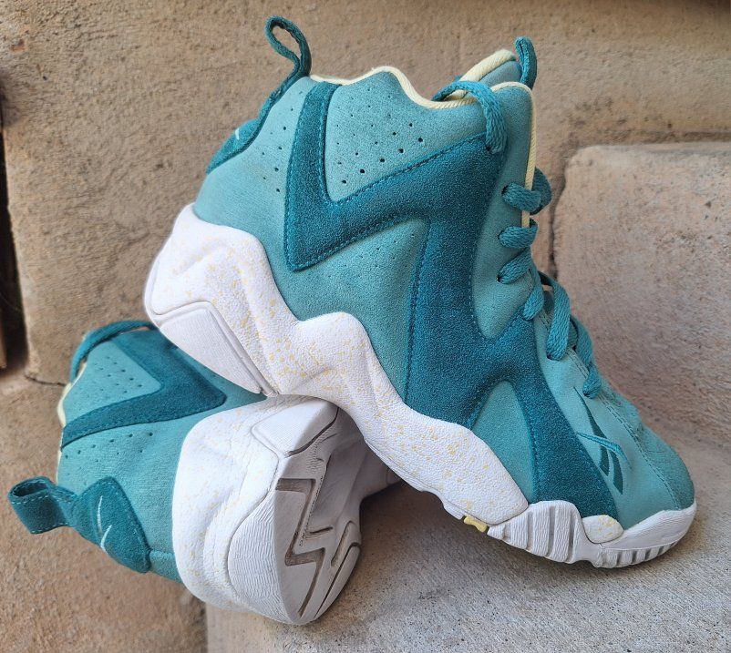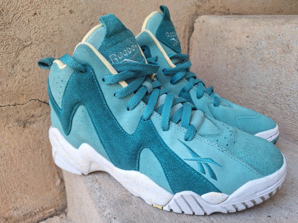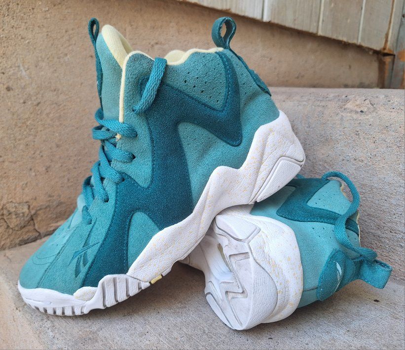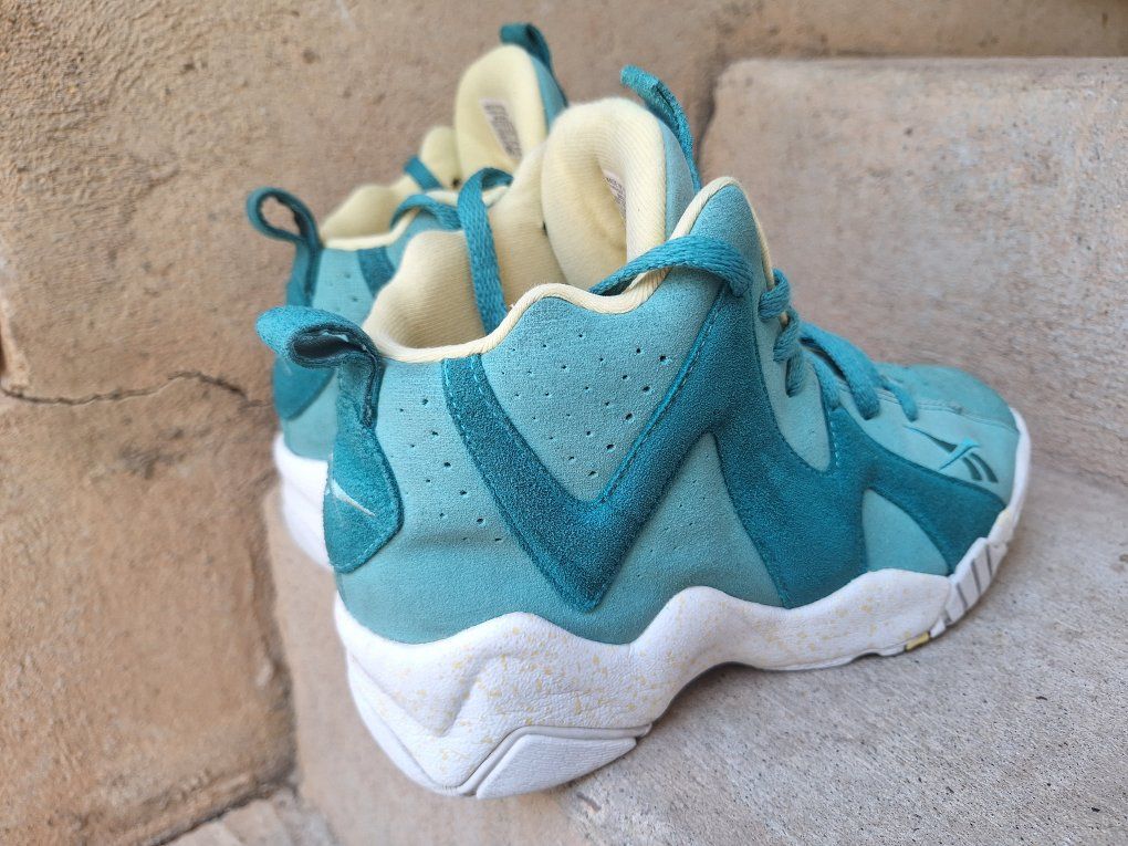 CashAppCheck out this awesome rare pair of Mens Reebok Kamikaze Mid II Easter Teal Suede Sneakers! These are from 2014 in US size 7.5. They are designed for athletic use and offer a cushioned, comfortable fit, making them suitable for both activewear and casual occasions. The sneakers are part of the Kamikaze product line by Reebok, honoring the legendary Shawn Kemp, adding to their uniqueness and appeal for collectors. Still in amazing condition insides are super nice and padded. Comes from a clean smoke and pet free environment. Please see photos for closer details, thanks for looking!