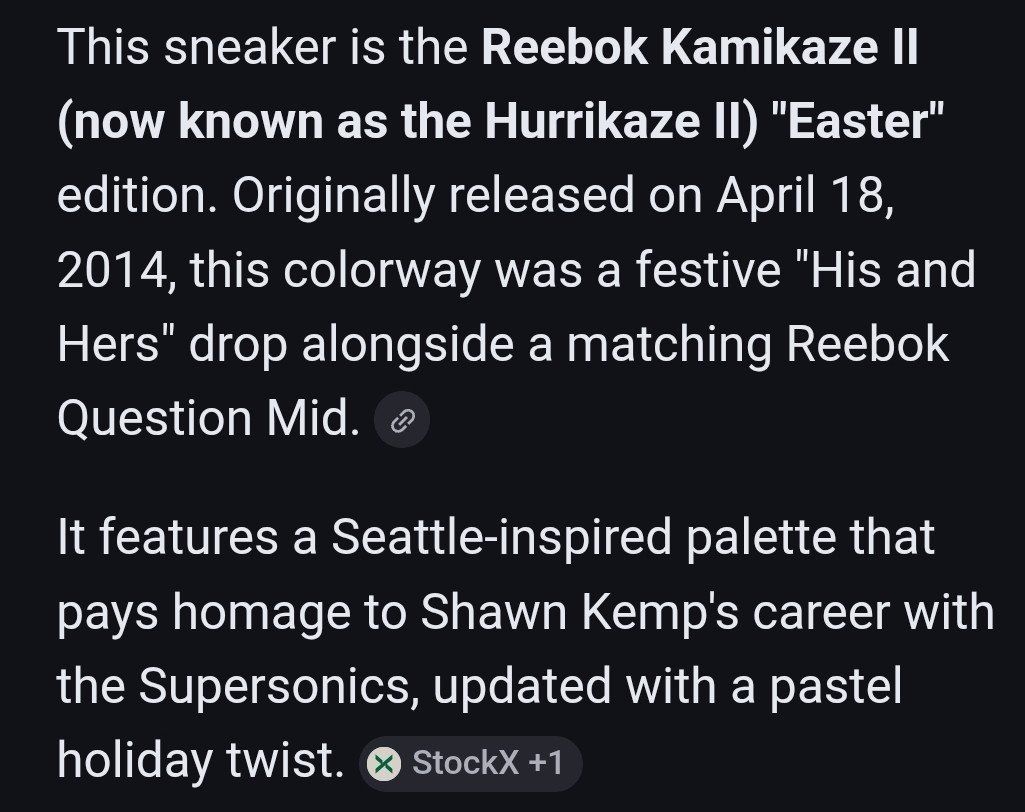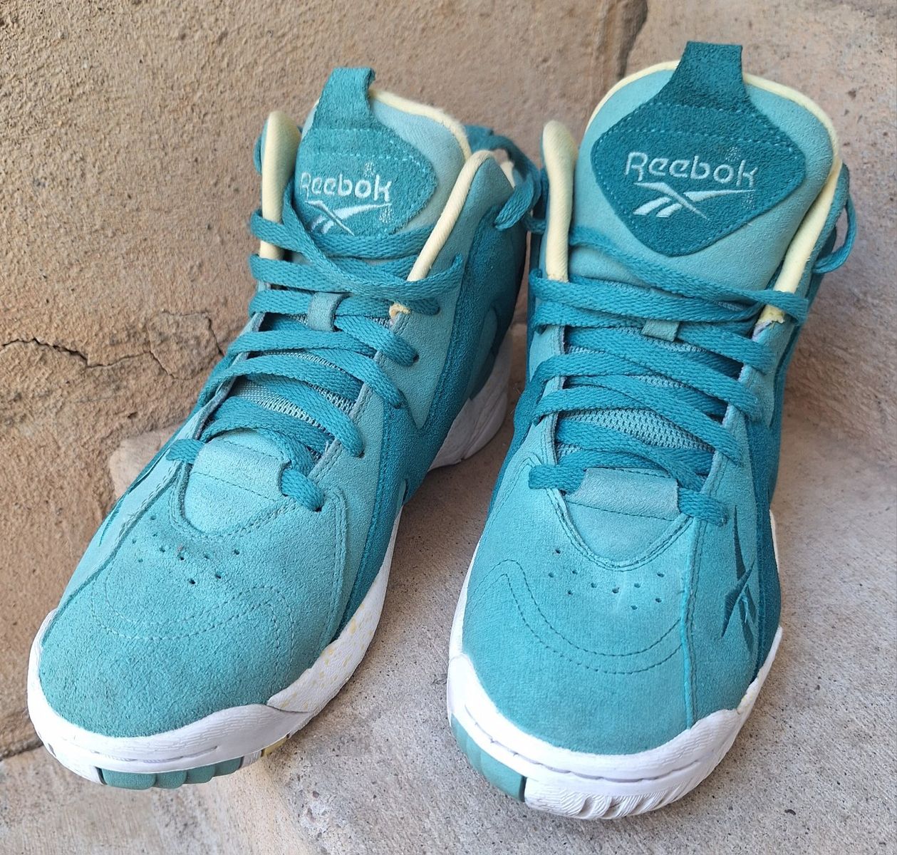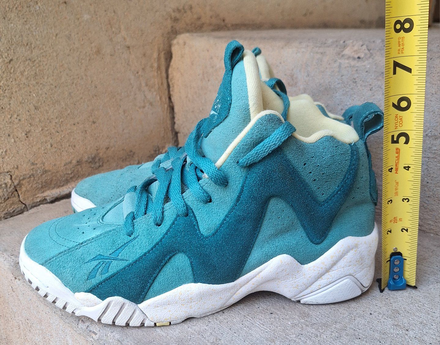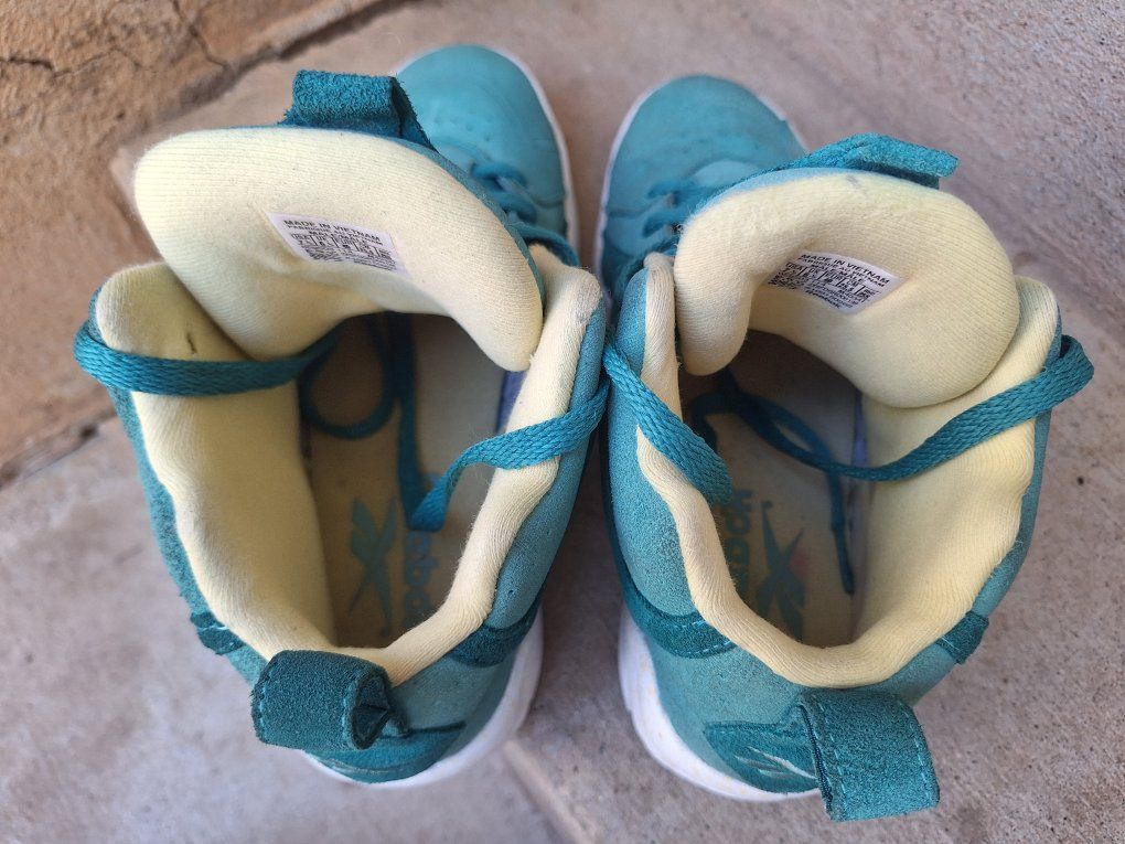 CashAppCheck out this awesome rare pair of Mens Reebok Kamikaze Mid II Easter Teal Suede Sneakers! These are from 2014 in US size 7.5. They are designed for athletic use and offer a cushioned, comfortable fit, making them suitable for both activewear and casual occasions. The sneakers are part of the Kamikaze product line by Reebok, honoring the legendary Shawn Kemp, adding to their uniqueness and appeal for collectors. Still in amazing condition insides are super nice and padded. Comes from a clean smoke and pet free environment. Please see photos for closer details, thanks for looking!