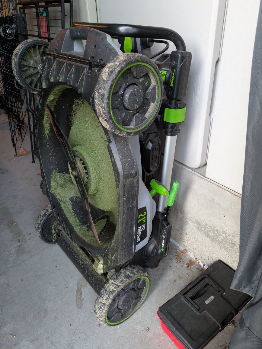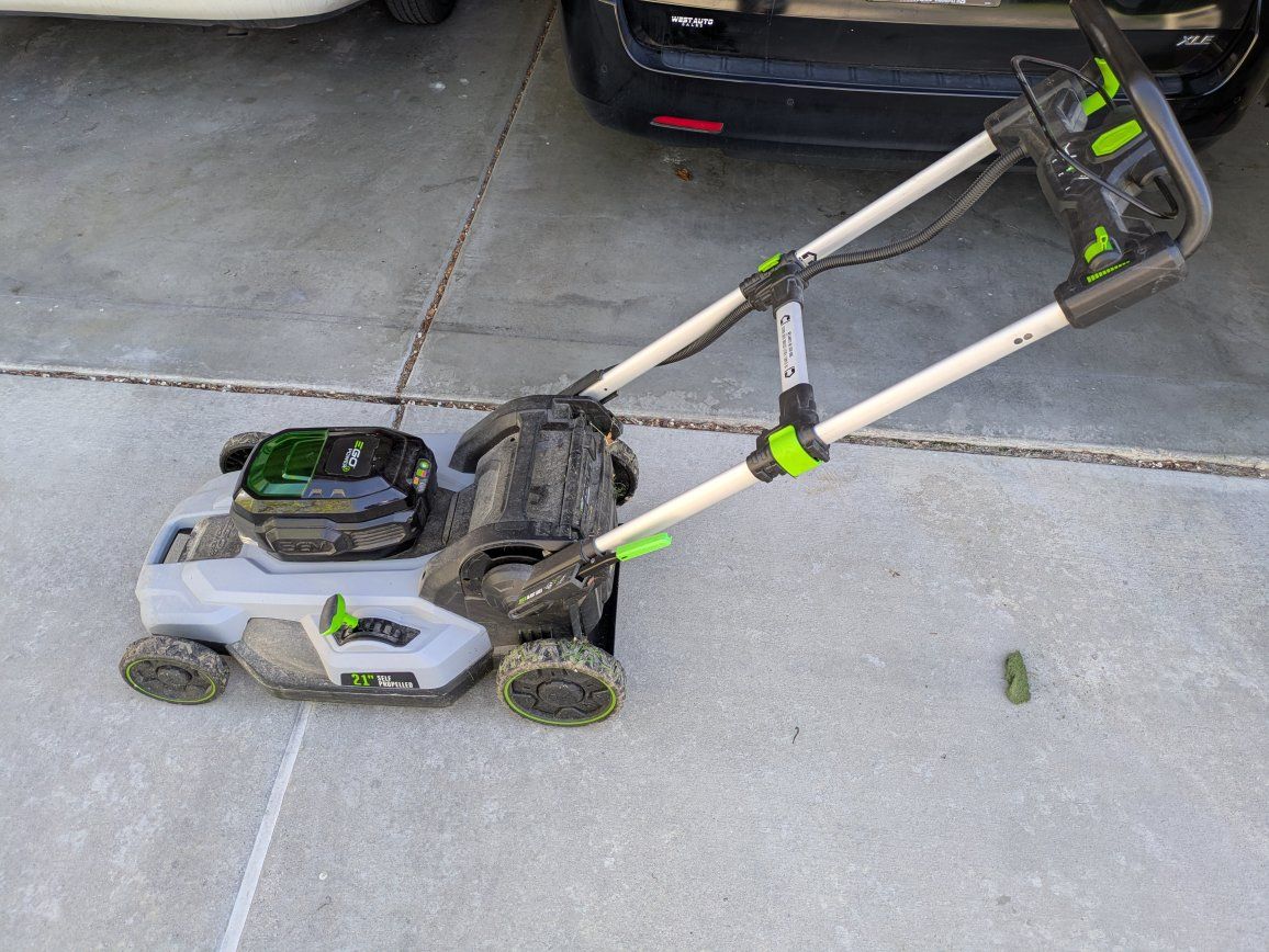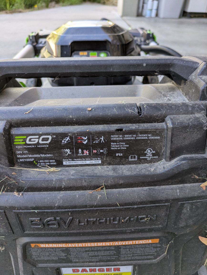 56-Volt cordless mower, no bag. Battery charger if you're interested. Lawn mower model: LM2100SP Battery model: BA4200
