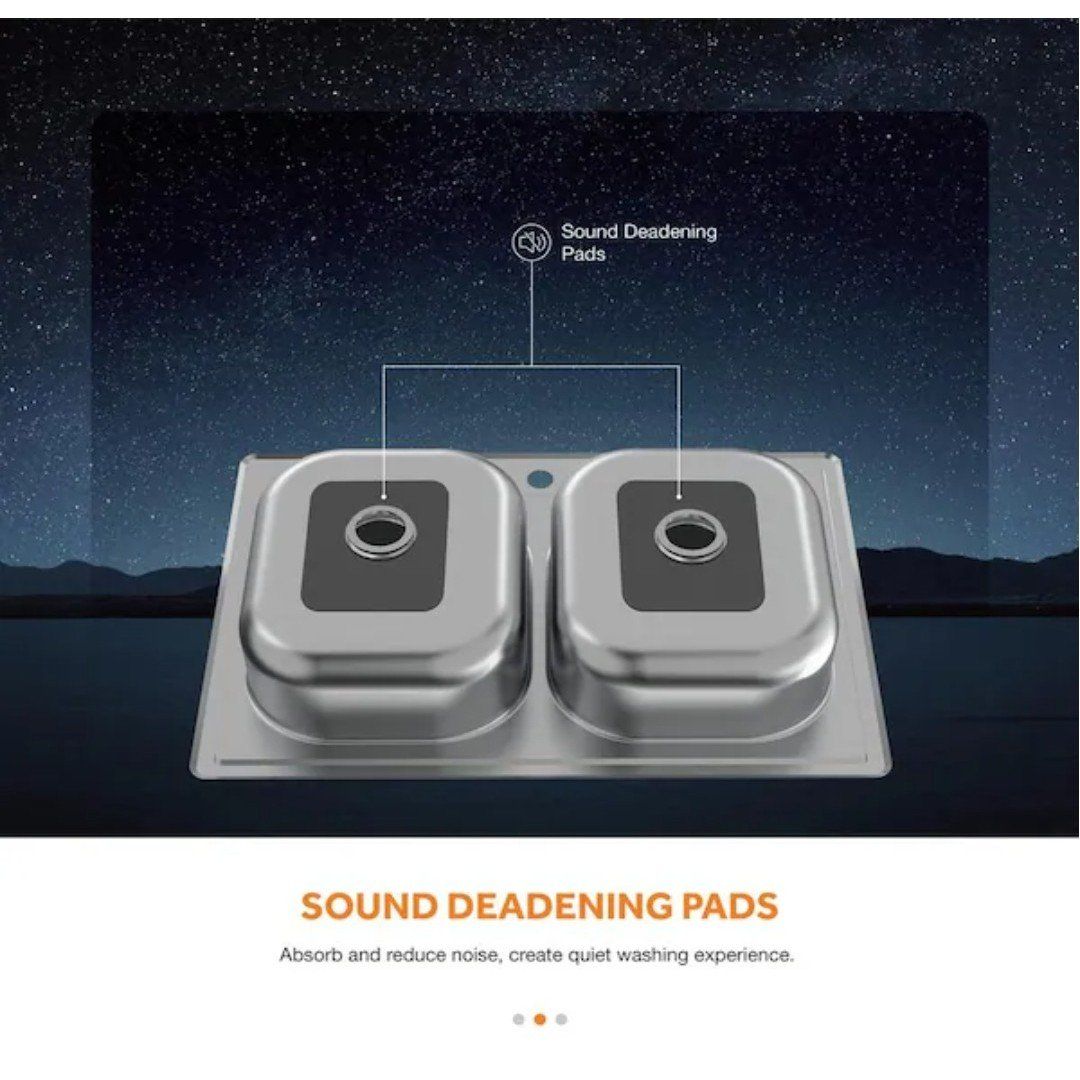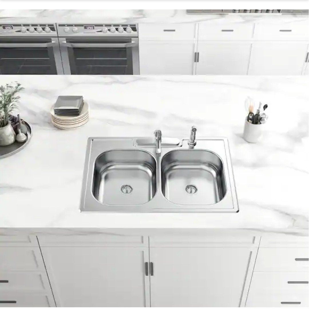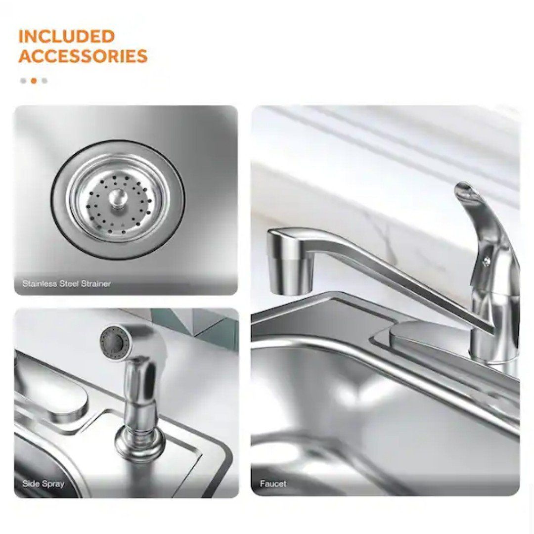Top Mount All-in-One 33 in. x 22 in. Double Bowl Kitchen Sink features 2-generous basins of equal size to allow for multiple uses at once to help you maximize your workspace. The thick, durable stainless steel has a satin finish for added durability to withstand repeated use. Each basin is fully undercoated to reduce noise and condensation and to maintain water temperature in the sink to keep dishwater warm. For added convenience, pre-drilled faucet holes are ready to accept the faucet included with the sink.