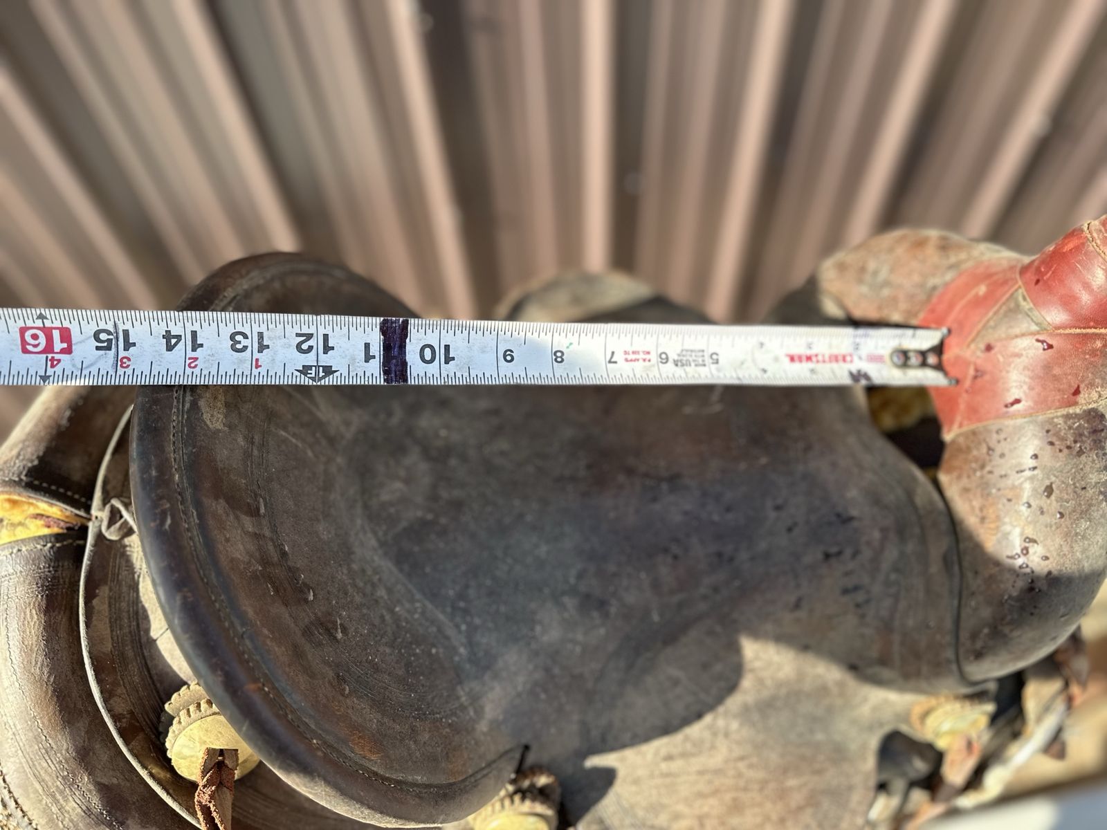 This saddle is an old one, was told over 100 by the gentleman who rebuilt it. Rebuilt and refurbished. Comfortable saddle.
