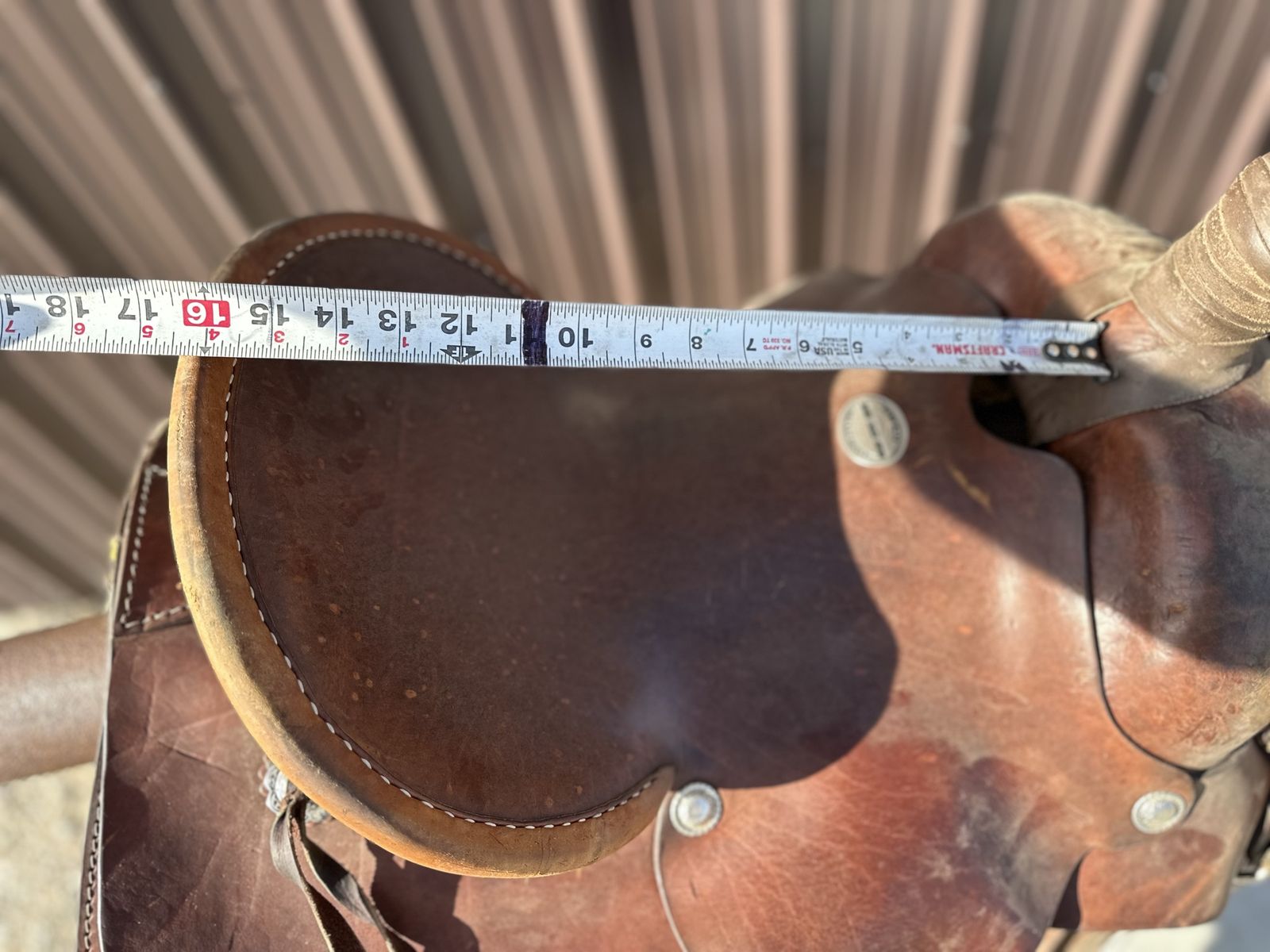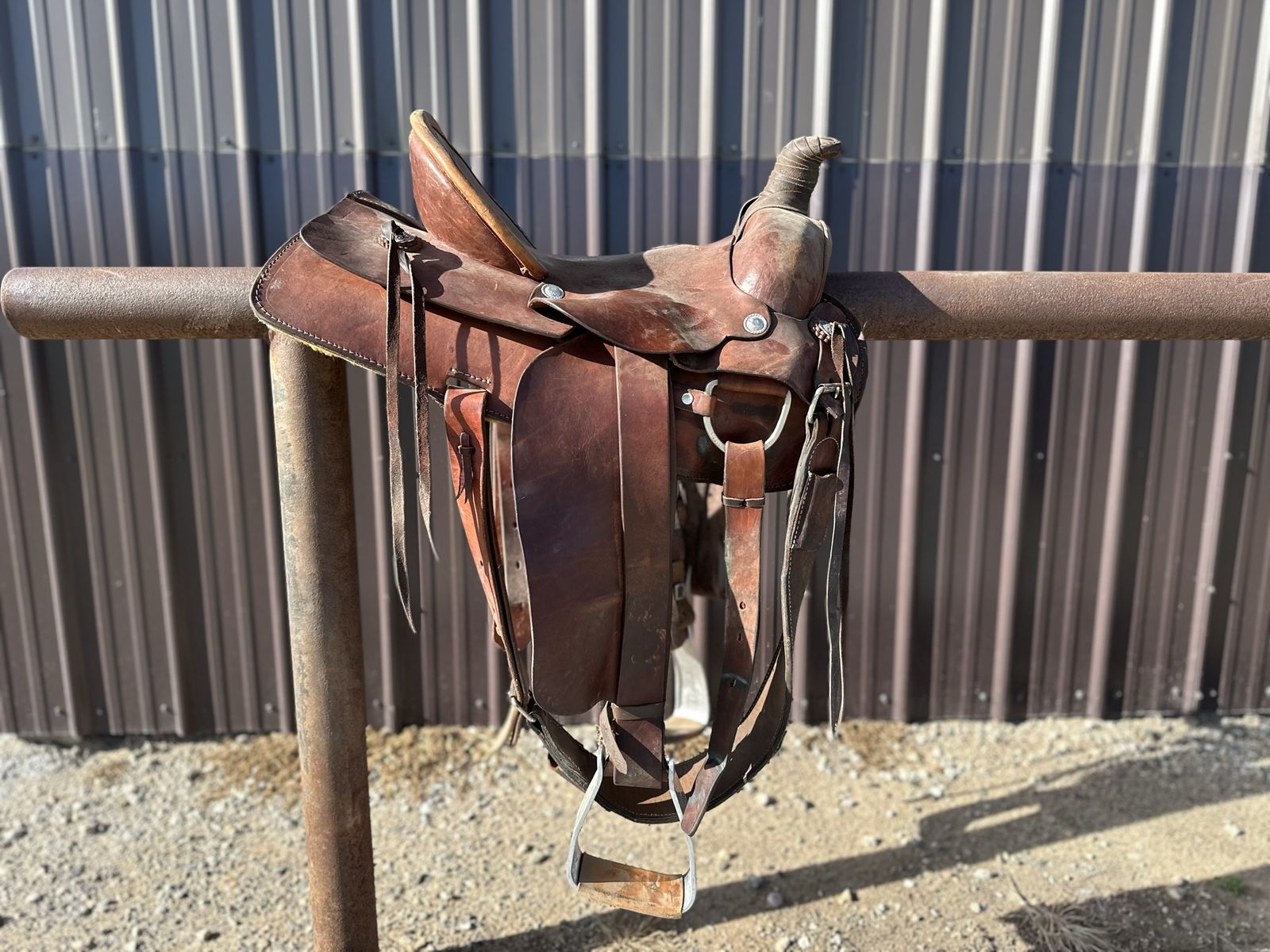 Way nice saddle. Lots of good parts or rebuild the tree. Had a horse flip over and break the swell.