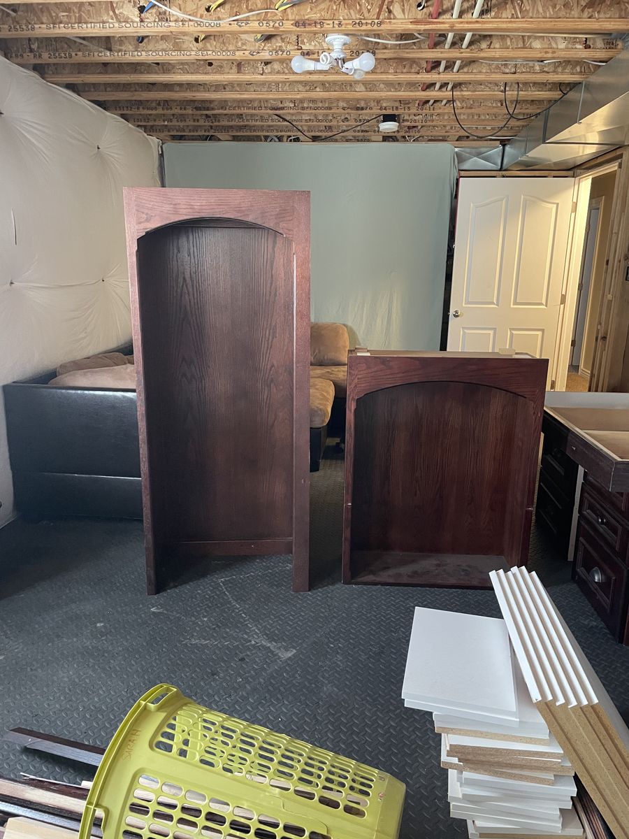 ApplePay2 tall arched book shelves 400. 1 medium arched book shelves 300. 5 base cabinets with drawers 200. 3 medium wall mount cabinets with shelves 250. 5 tall cabinets 300.00 1 wire mesh cabinet 200. Base / molding and shelves available