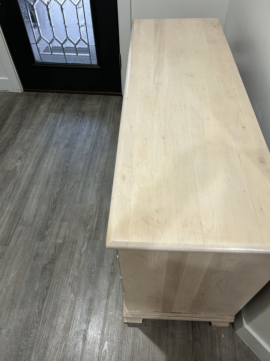 VenmoBeautiful solid wood dresser with a clean, natural finish. This piece has been lightly refinished to highlight the wood grain and give it a modern, neutral look that fits with any décor.