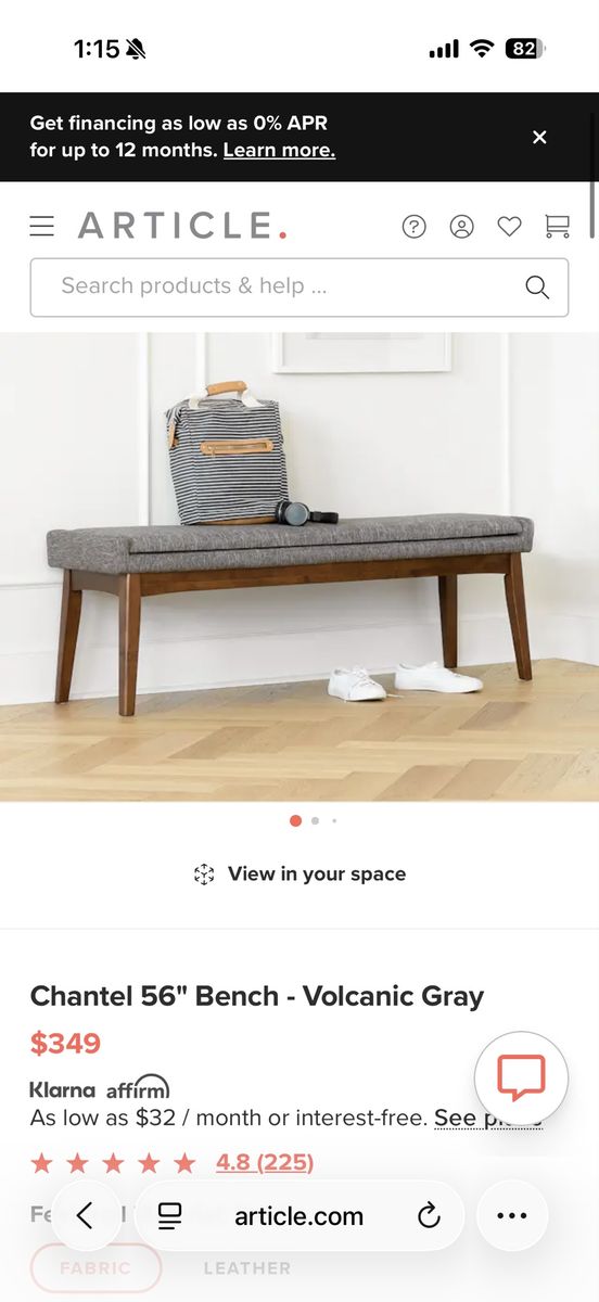 VenmoLike-new modern upholstered bench from Article — super clean and stylish piece that fits great in an entryway, bedroom, or at the foot of a bed.