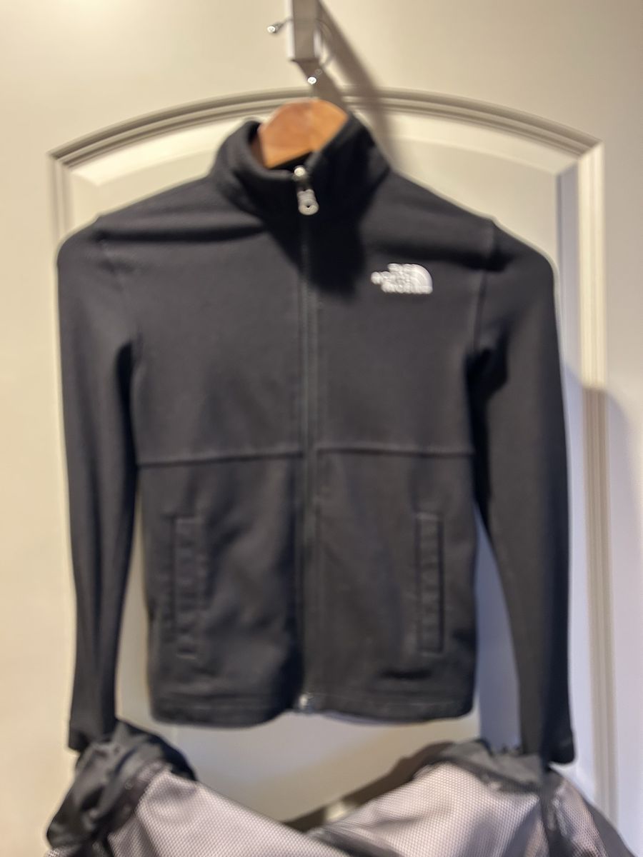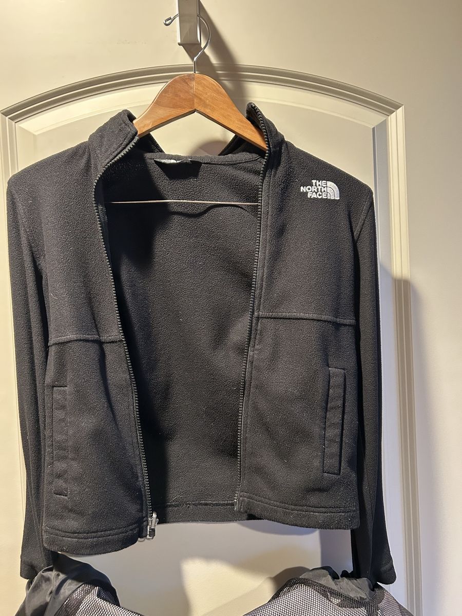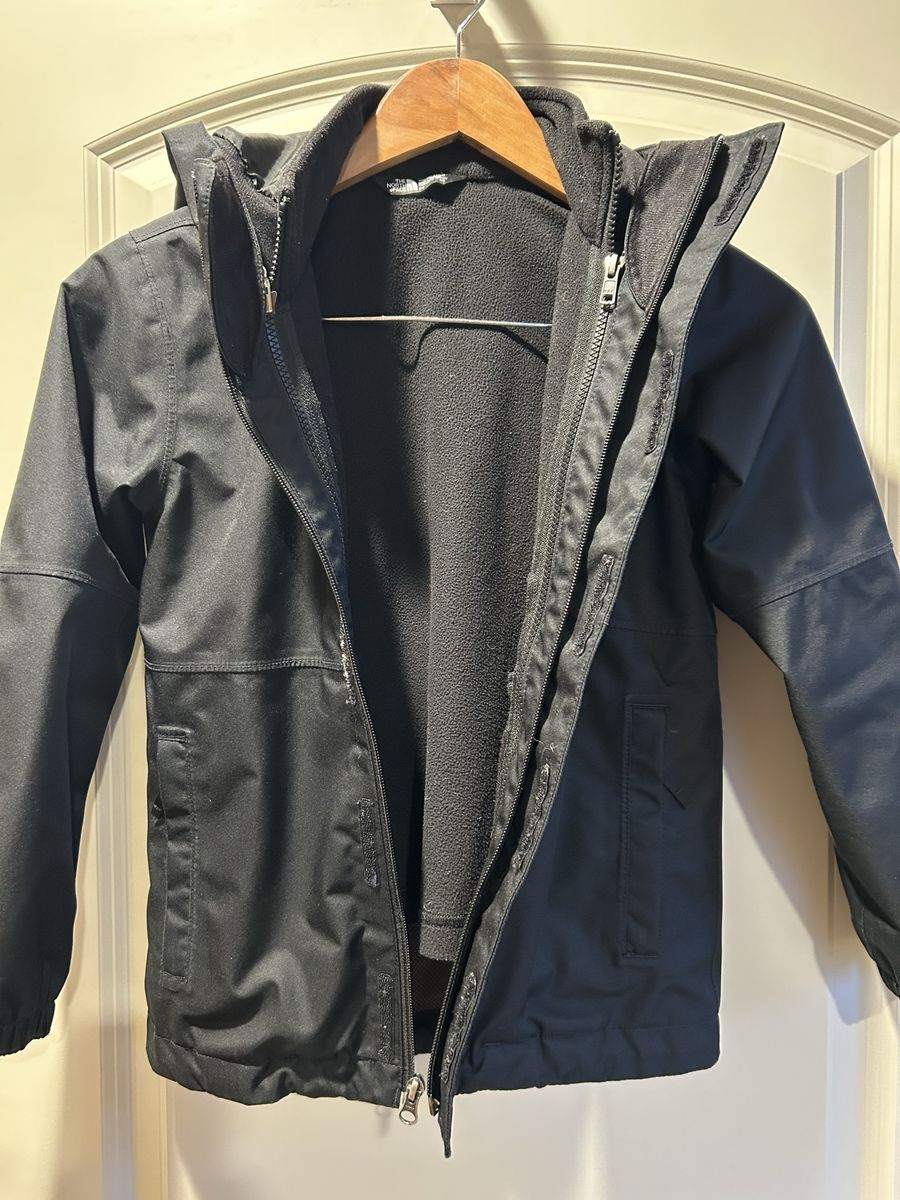 VenmoLike new youth small 7/8 2 in 1 fleece jacket with waterproof coat with hood. Can be worn together or separate. Two zipper pockets with adjustable waistband. Perfect for the entire year. Zippers work easily. Clean smoke free. Minor wear as indicated in picture. Elastic wrists cuffs. Cash or Venmo. Located and picked up from Alpine.