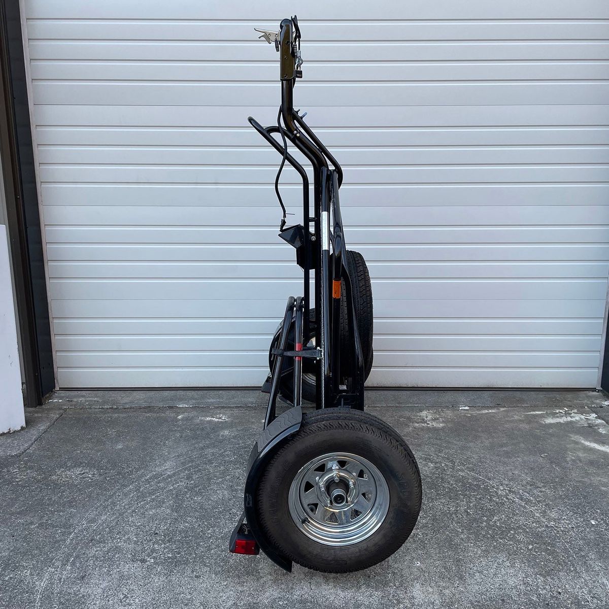 I’ve owned the trailer for years and have only used it approximately 8 times. The trailer stands up and it easy for one person to move it around .