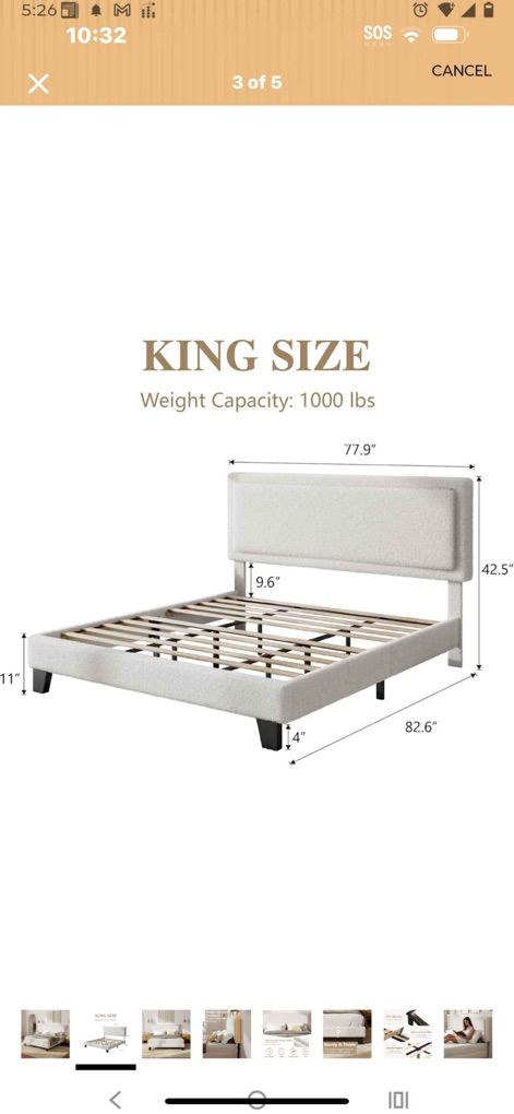 King Size Bed Frame with Adjustable Headboard, Boucle Cloud Platform Bed with Wood Slats, Mattress Foundation, No Box Spring Needed, Easy Assembly, Available Beige and white color New in box $240 cash or venmo