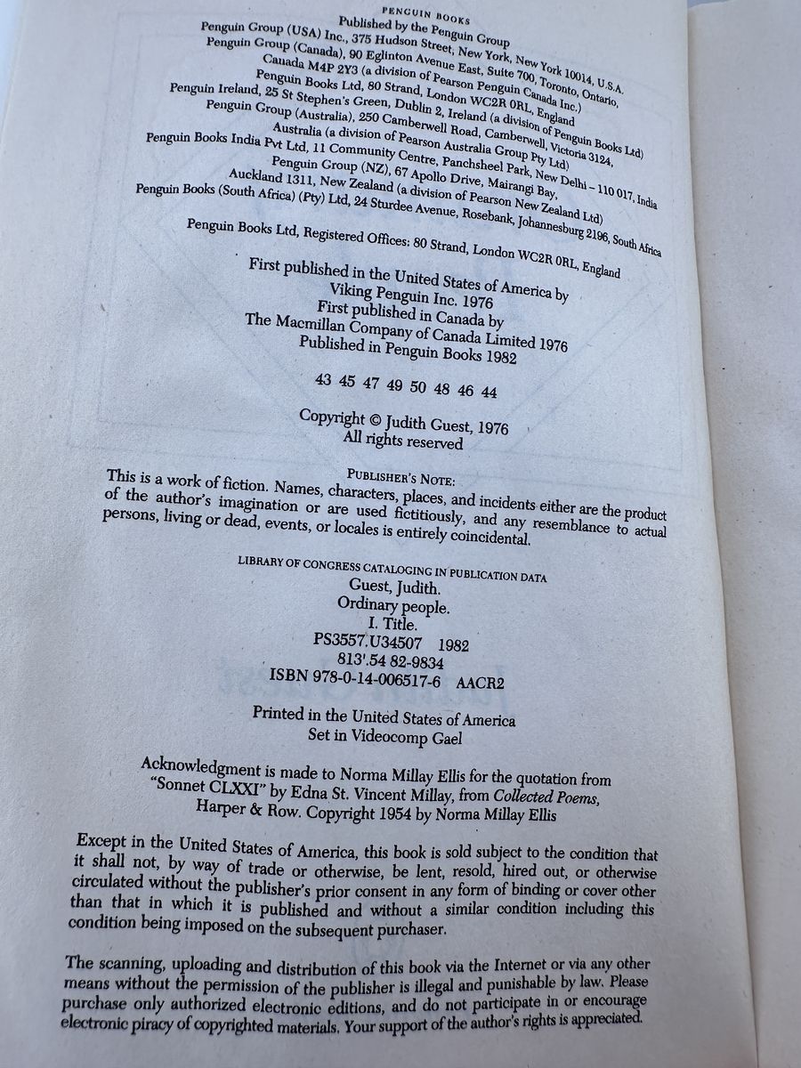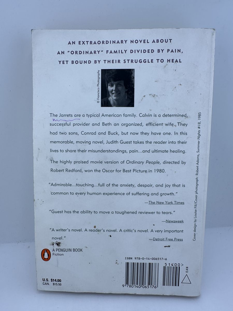 ApplePayA powerful and emotionally resonant novel, Ordinary People by Judith Guest explores grief, family dynamics, and healing after tragedy. This bestselling literary classic—adapted into the Academy Award-winning film—remains a cornerstone of modern American fiction. This vintage Penguin paperback is a well-read copy with annotations, making it ideal for readers, students, or collectors of classic contemporary literature.