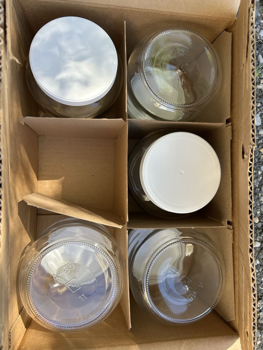 VenmoNew in the box set of 5 wide mouth glass jars with white plastic lids. Clean smoke free. Measurements are in the pictures. Cash or Venmo. Located in and picked up from Alpine.