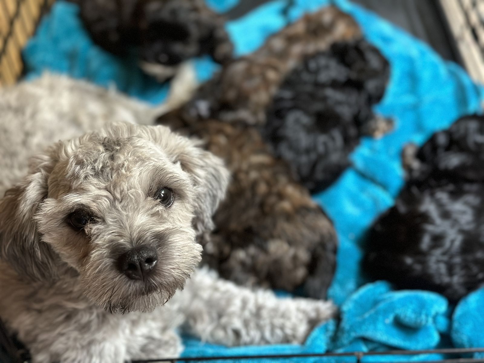Both parents are non-shedding and hypoallergenic. Calm and quiet. This is a good pup.