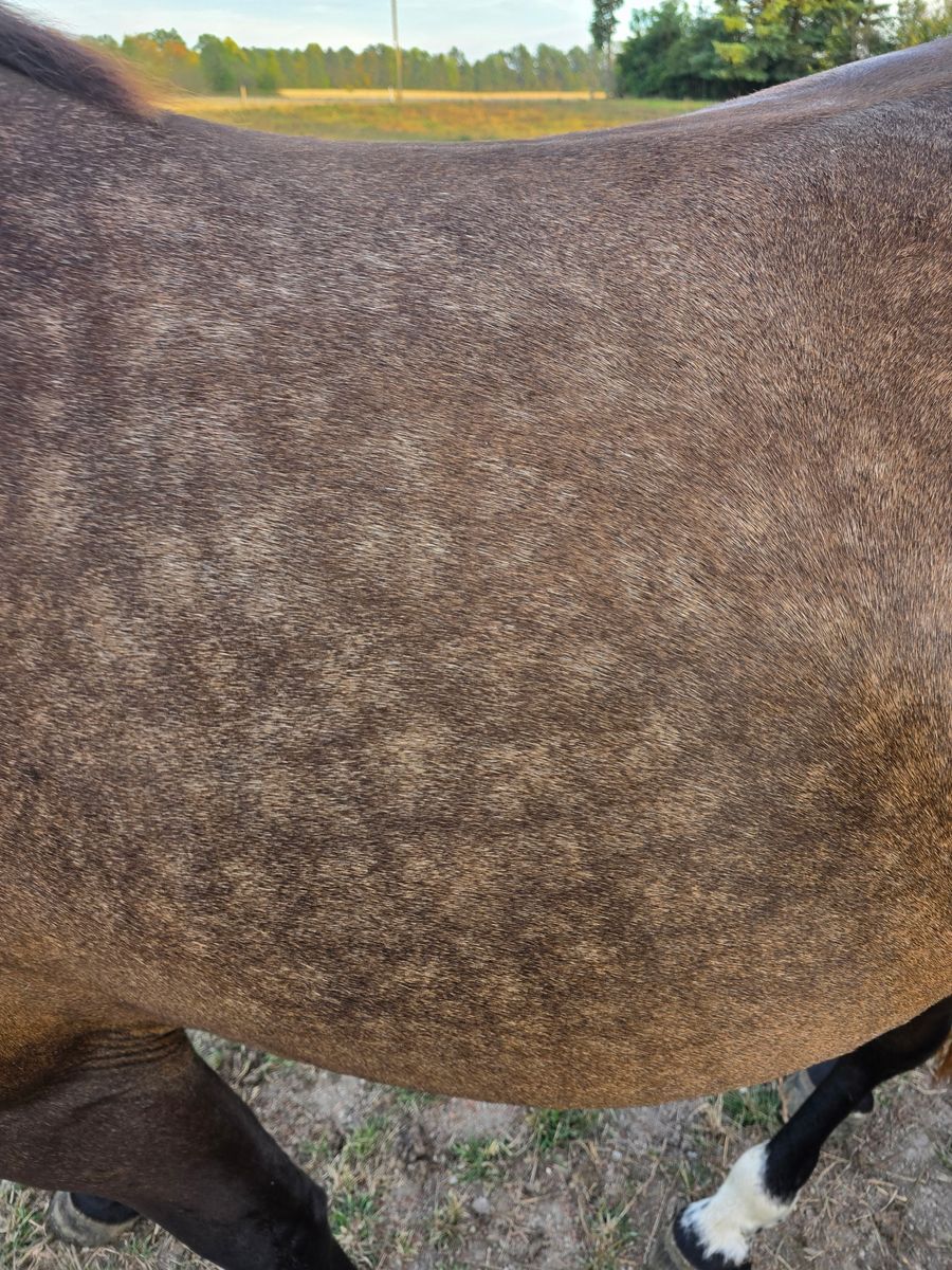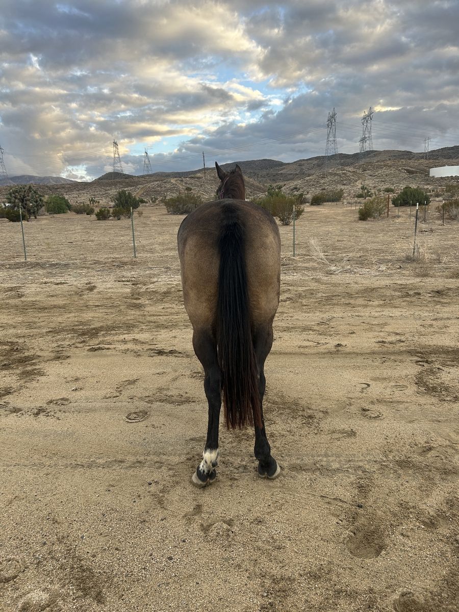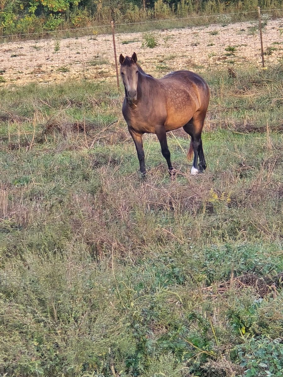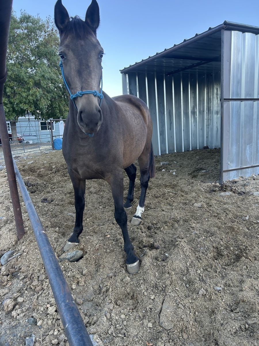Meet Sophia, a coming 5-year-old mare who is quite literally the "total package." If you’ve been looking for a horse with the build of a tank and the heart of a puppy, she’s the one. • Personality: She is a true "pocket pony." Sophia will follow you anywhere and loves human attention. She’s the first to greet you at the gate and has a sweet-as-pie disposition that is hard to find. • The Build: Strong, sturdy, and "built like a tank." She has the bone and substance to carry a rider all day. • The Look: A breathtaking sooty buckskin coat with deep dapples. She turns heads everywhere she goes. • The Brain: Sophia is brave and level-headed. She is used to traffic and isn’t phased by barking dogs. She’s ready to be your dependable partner on the trails or in the arena. Don't miss out on this rare combination of color, conformation, and kindness. Come meet your heart horse today!