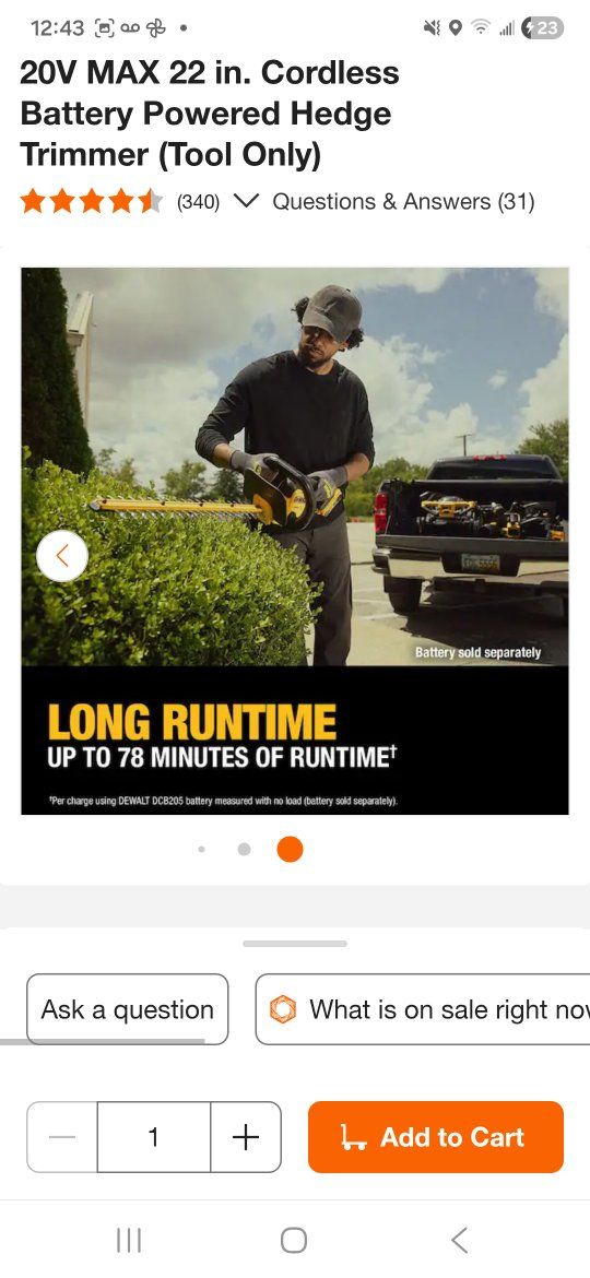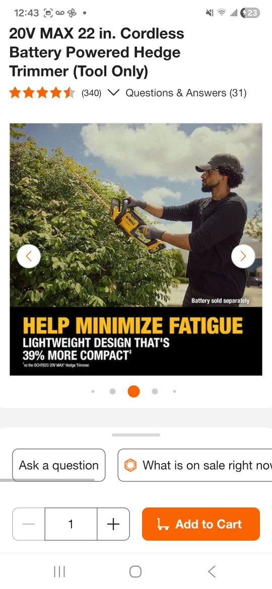 ZelleNew Dewalt 20V MAX Battery Powered Hedge Trimmer. Model number DCHT820B. TOOL ONLY