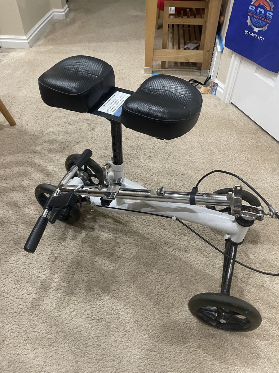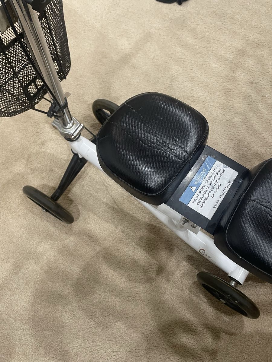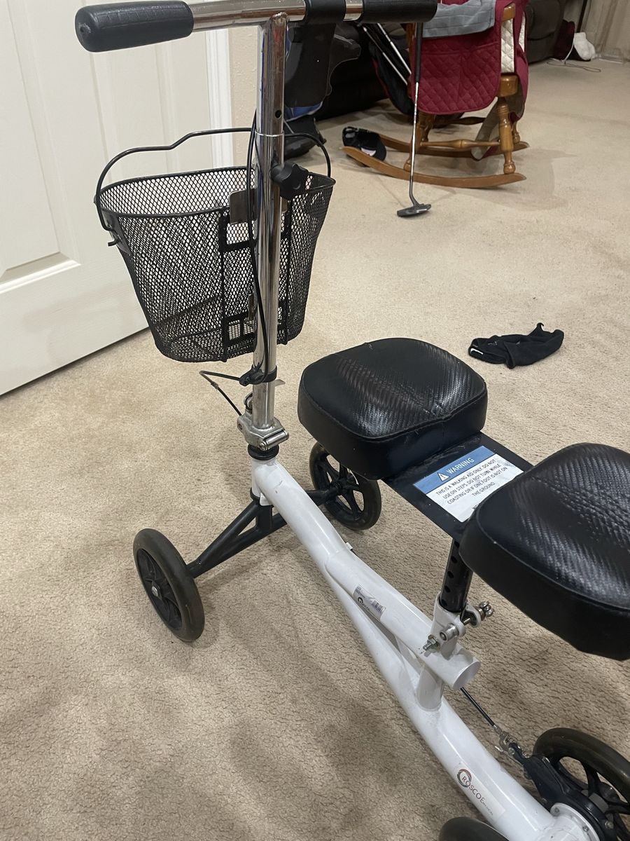 VenmoRoscoe brand knee scooter with basket. Adjustable knee and handlebar height. Rear brake.