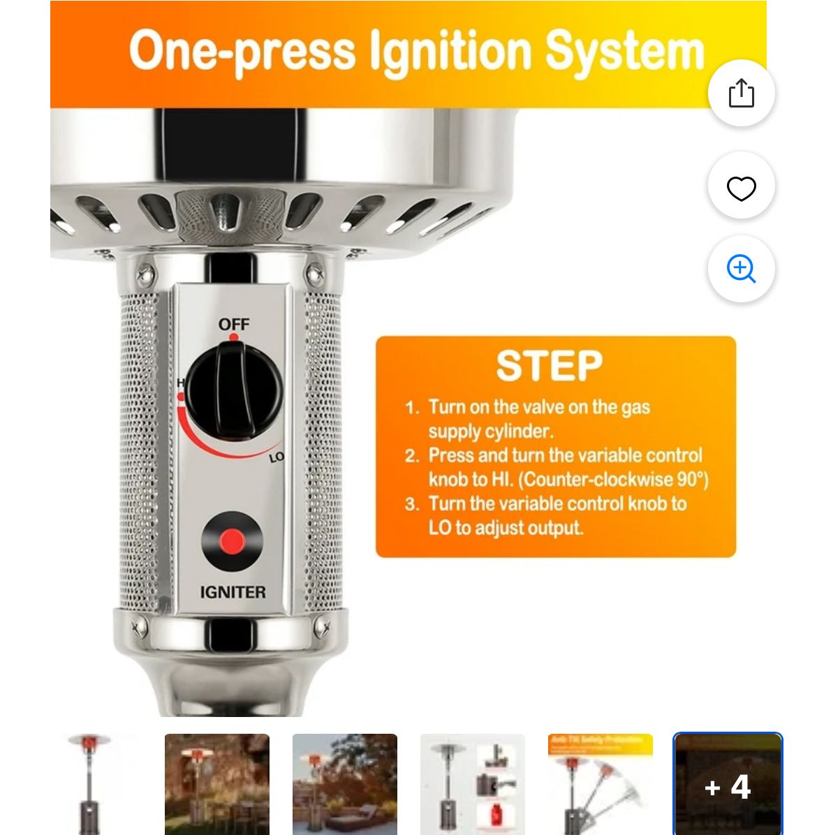 Powerful Heating: This outdoor propane gas heater delivers 50,000 BTU, providing rapid and consistent warmth within minutes for outdoor settings. Effortless Operation: Featuring a one-press ignition system and an adjustable control valve, it allows for easy temperature customization and simple startup in under an hour. Enhanced Portability: Model WHC-0219 includes robust rolling wheels for seamless mobility, making it suitable for various locations like patios, balconies, and camping. Broad Coverage: Designed to heat areas up to 200 sq. ft., this versatile heater is ideal for elevating gatherings and outdoor activities. Integrated Safety: The design prioritizes safety with its one-press ignition and an umbrella-like top for uniform heat distribution. See Less