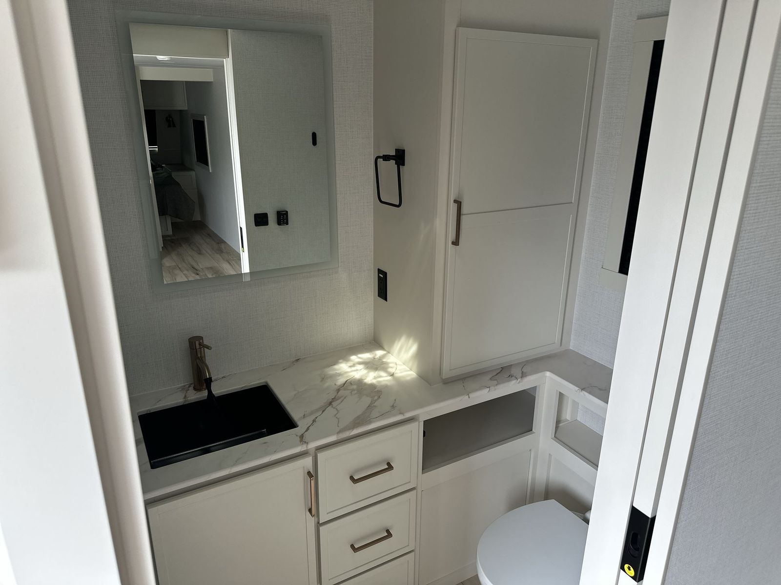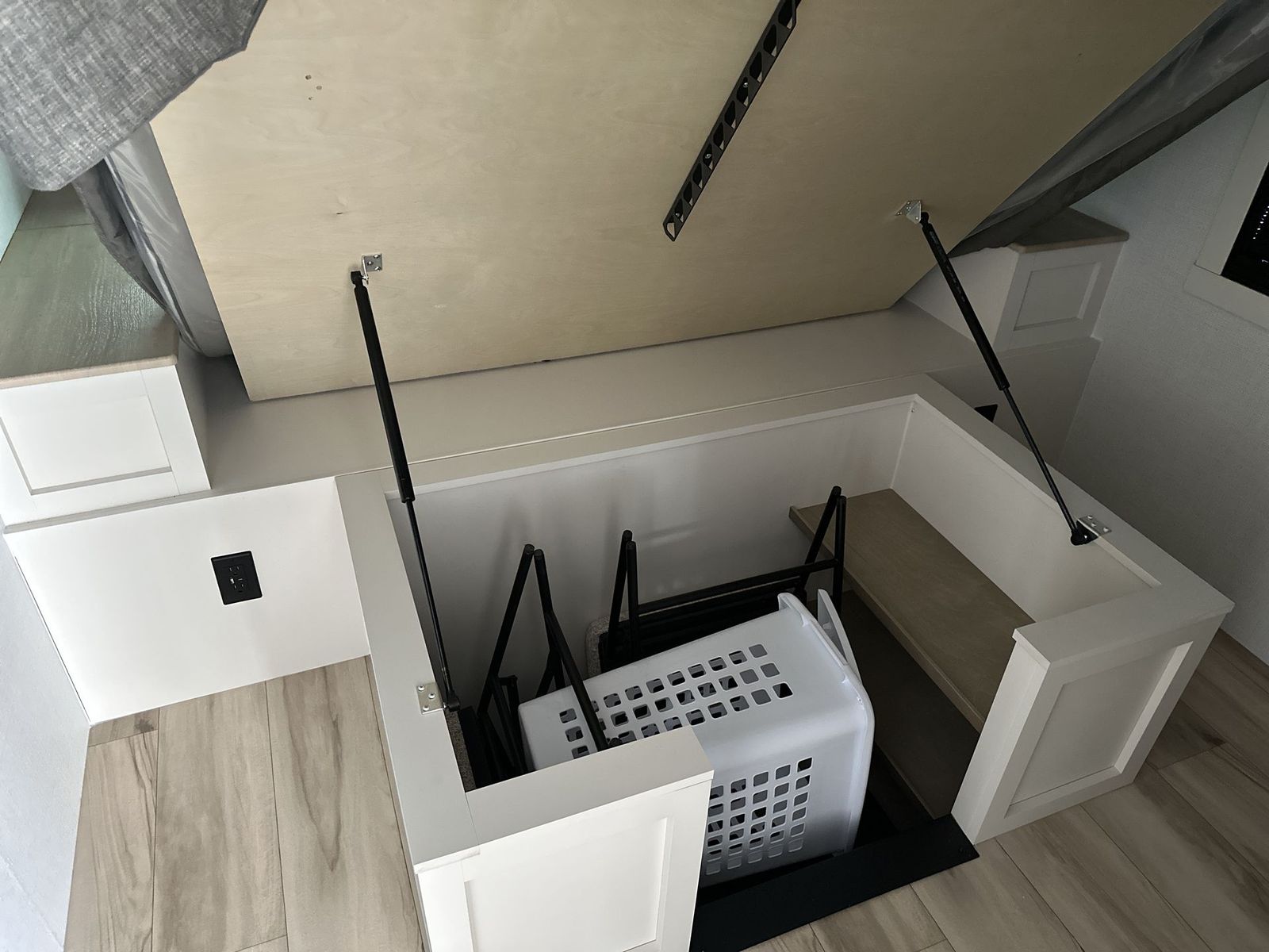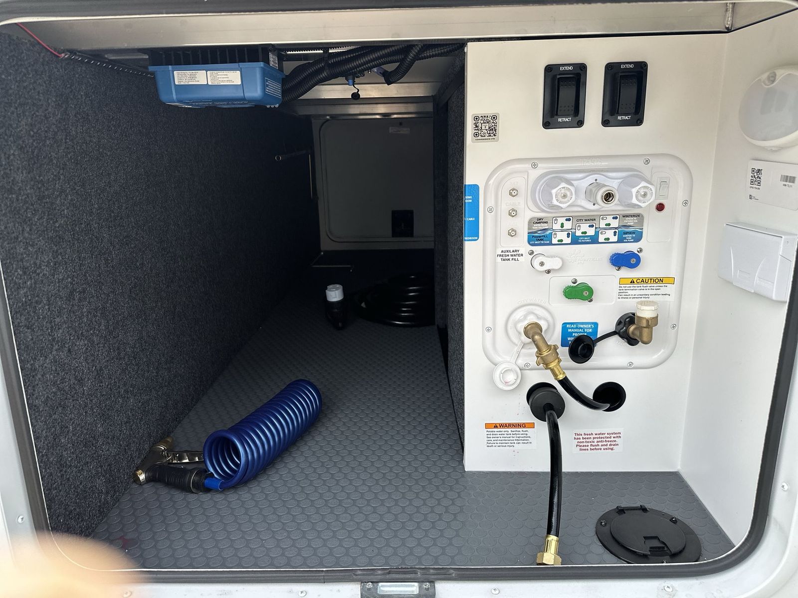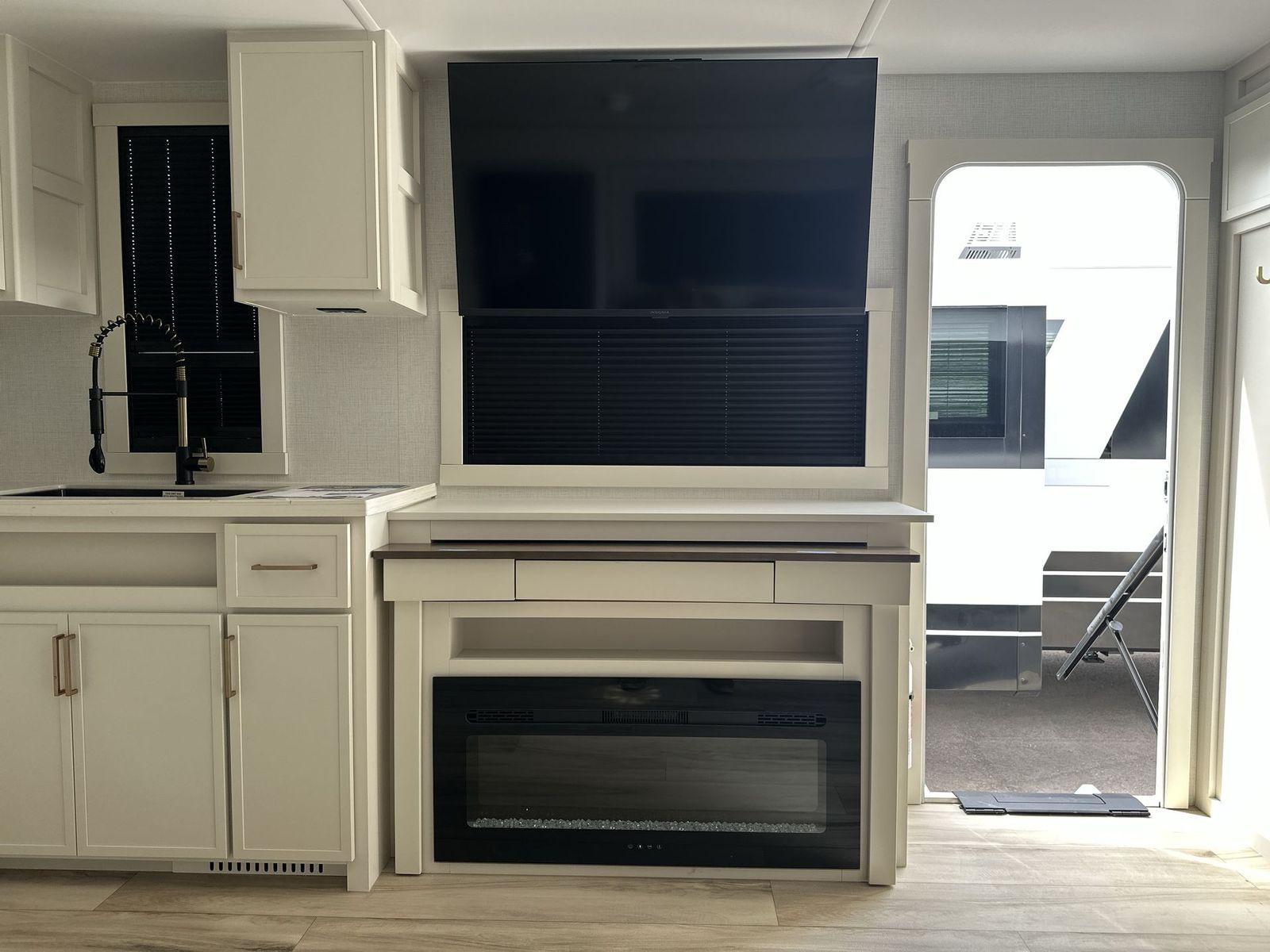 Brinkley Model I travel trailer 265 highlights: Theater Seating Slide Pull-Out Dining Table King Bed LED Chassis Lighting Drop-Frame Pass-Thru Storage One look at this travel trailer and you'll be sold! The full rear bath features a spacious 42" x 30" shower with a built-in seat and Maxxair fan to name a few comforts. The front private bedroom features a 66" x 80" king bed with a MaxSpace Split-Level Wardrobe underneath to store shoes, clothes, and more! A slide out in the combined living area and kitchen makes your space more open, and you'll enjoy relaxing on the theater seating here in the evenings. The full kitchen includes a three burner stovetop, residential 30" convection microwave, 12 cu. ft. 12V refrigerator, plus a trash bin and Stow N' Go paper towel holder for added convenience. You can choose to eat outdoors under the 18' electric awning with LED lights or stay inside to dine at the pull-out dining table with a drawer for added storage! And if you're needing more sleeping space, just choose the optional tri-fold sofa in place of the theater seating! The lightweight Model I travel trailer by Brinkley is the perfect choice for those looking for an easy tow and at-home comforts! There is a drop-frame chassis, high-performance Road Armor suspension equalizer system, and Demco EZ Latch trailer coupler that automatically latches when dropped onto a hitch ball without the need of a safety pin. Additional exterior features include square Euro frameless windows, automotive-grade paint, full-width LED strip lighting in the pass-thru, and a pet & property security campside tie-down to keep your gear and furry friends safe. Inside, you'll be wowed by Brinkley's CraftSense wood trim construction, residential solid surface kitchen countertops, dimmable bedroom lights, and marine-grade neon LED shower lighting to name a few stand-out features!