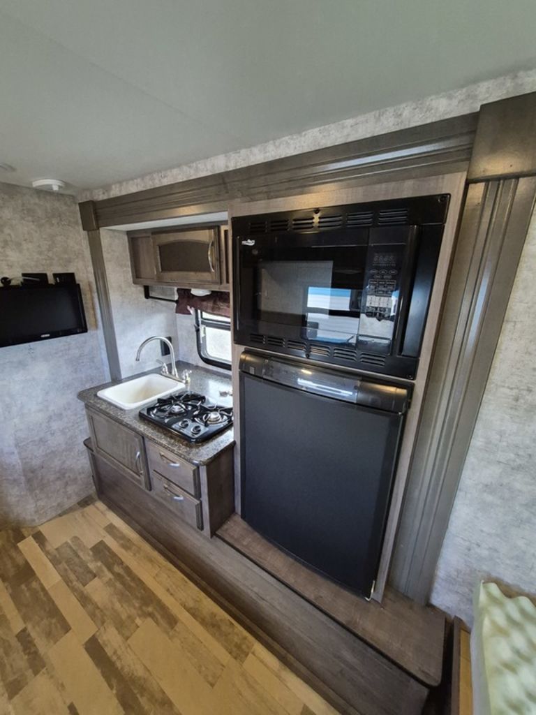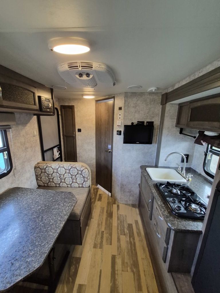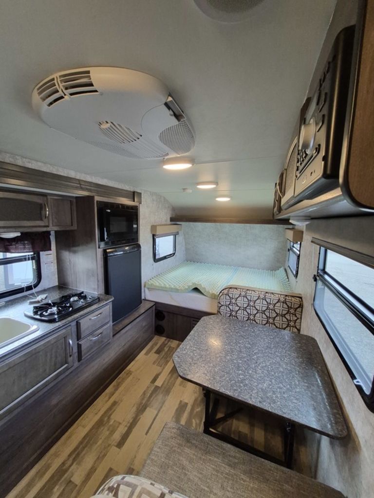 Aerodynamic, easy to tow, and full of features are three great reasons why the Winnie Drop should be your next camping trailer. The modest yet roomy design allows for 6'5" of headroom in the main living space, and a cozy feeling when lying in bed or sitting at the dinette table. Some models include a slide out creating even more space inside of your private camping cottage. Don’t overlook the modern conveniences of a bathroom, water heater, and cooking arrangements that help to make your home away from home comfortable. So, load up the storage and let’s go camping!