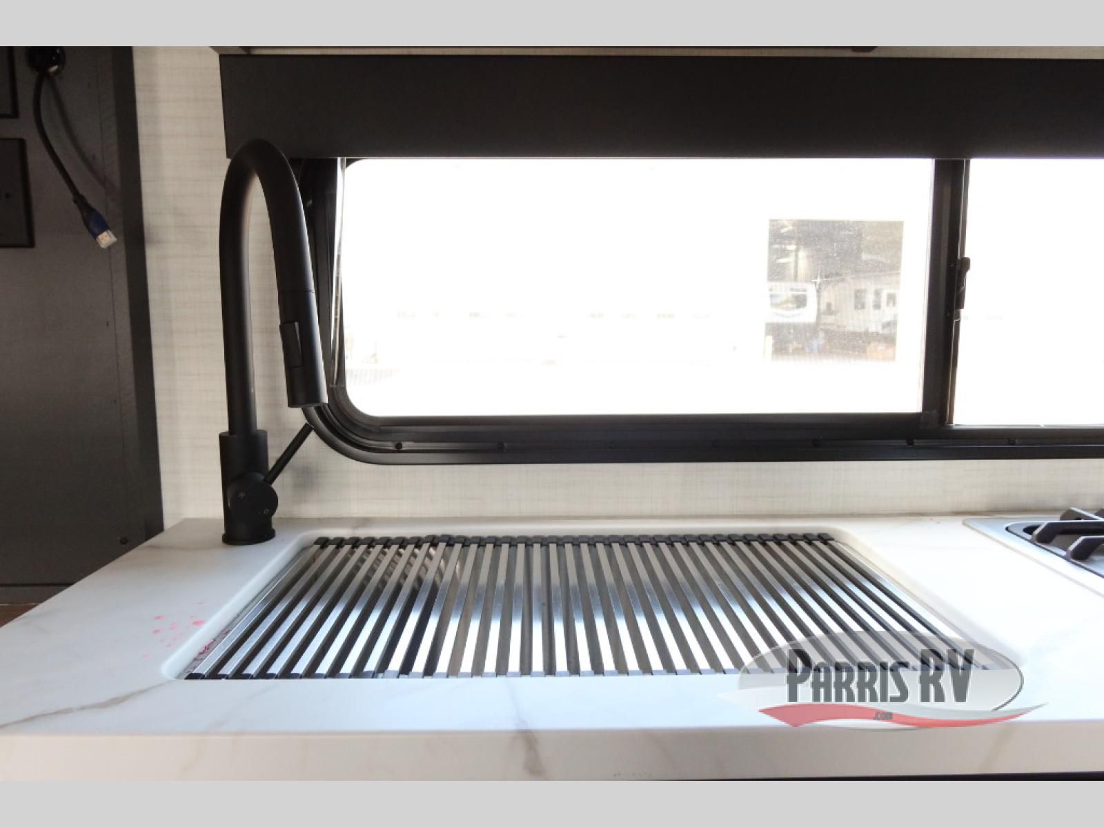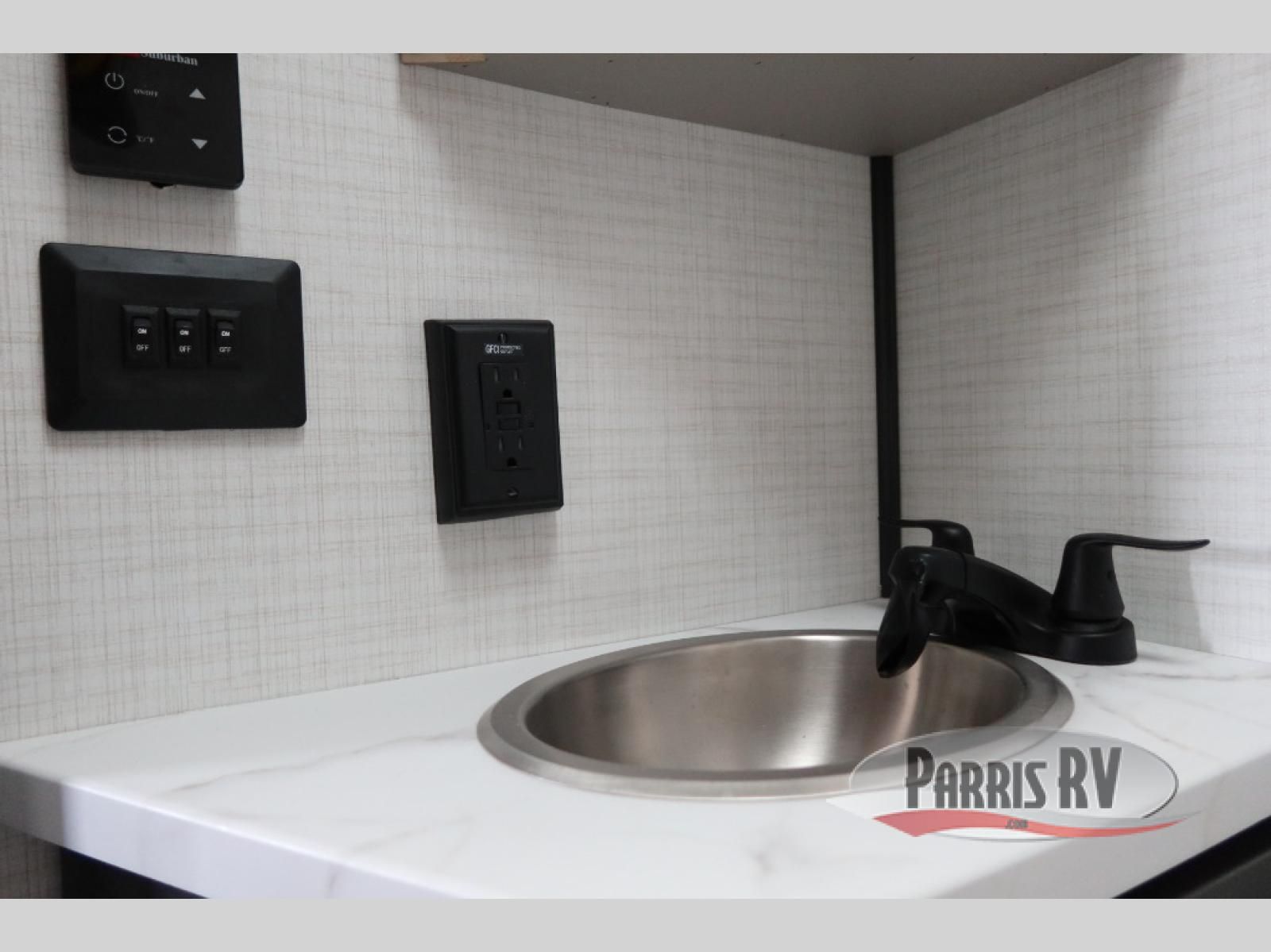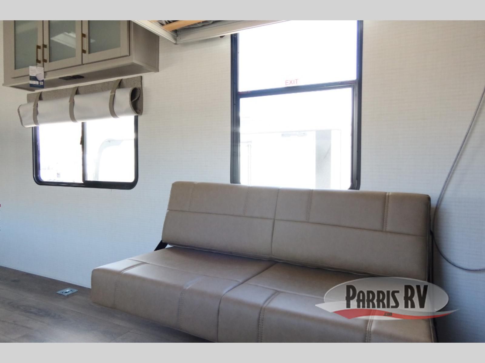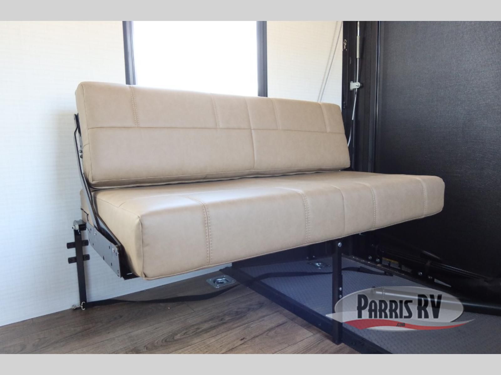 Designed to give you the flexibility to haul your gear while still enjoying the comforts of home. The front corner bedroom features a versatile Murphy bed, allowing you to easily transition from a comfortable sleeping space to a functional living area during the day. In the back, the entertainment center provides a convenient place for a TV and media components, making it easy to relax after a long day of adventure. The trailer also includes a practical galley kitchen equipped with a microwave, overhead cabinetry, and a 10 cu. ft. refrigerator, giving you everything you need to prepare meals while on the road. In the rear cargo area, the open layout allows you to bring along your favorite toys, while the outside storage compartments provide additional space to keep camping gear, tools, and travel essentials organized and easily accessible.