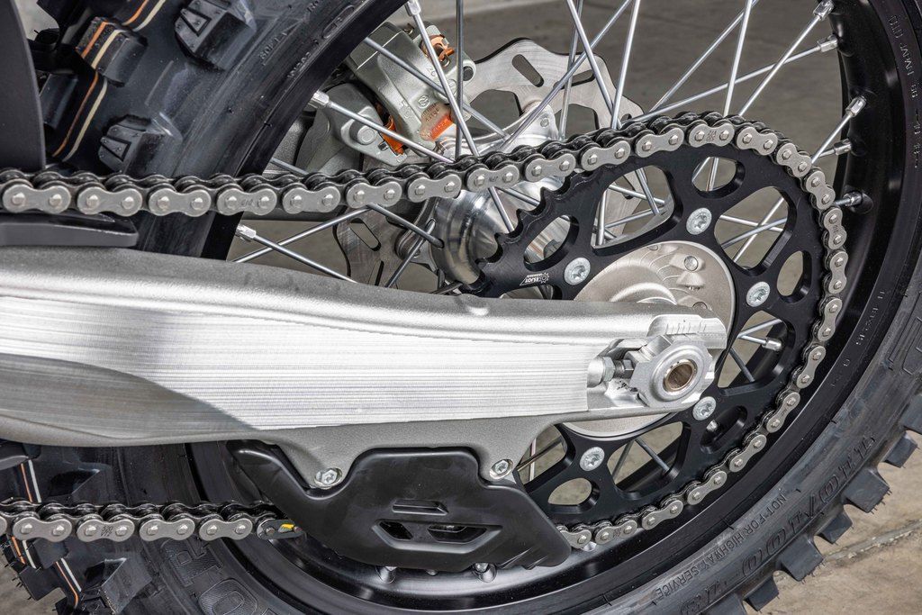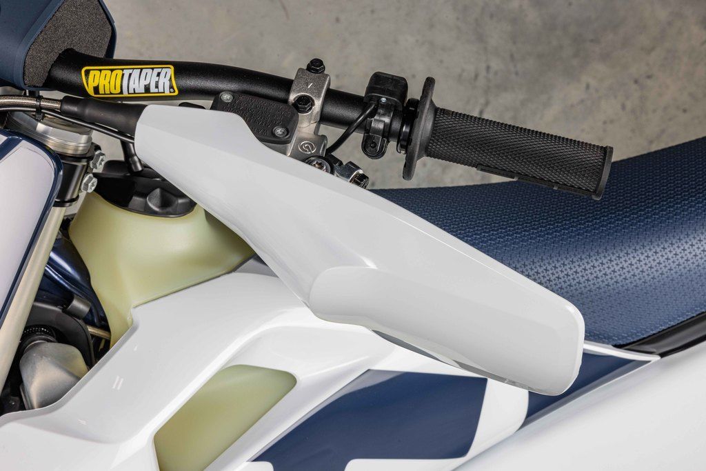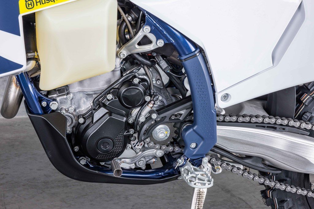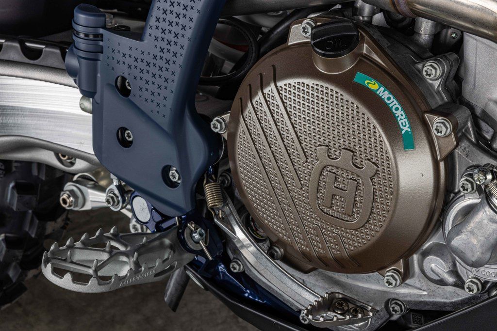 With an optimised distribution of material around the steering head and upper shock mount, the frame delivers confidence-inspiring handling and assured stability when entering corners. To complement the overall look of the machine, the chromium molybdenum chassis is finished with a premium, metallic blue powder coating. The finishing touches are the frame protectors, which not only protect the paintwork, but also provide riders with additional grip, even in the toughest conditions.
