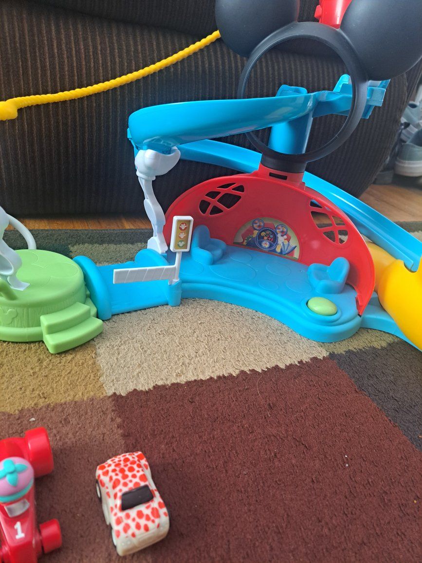 Disney Mickey Mouse track sets. 1 racing track and 1 Mickey Mouse Clubhouse track and house. Cute gas station and some random cars. These items come from a smoke free home. Please contact me by text.