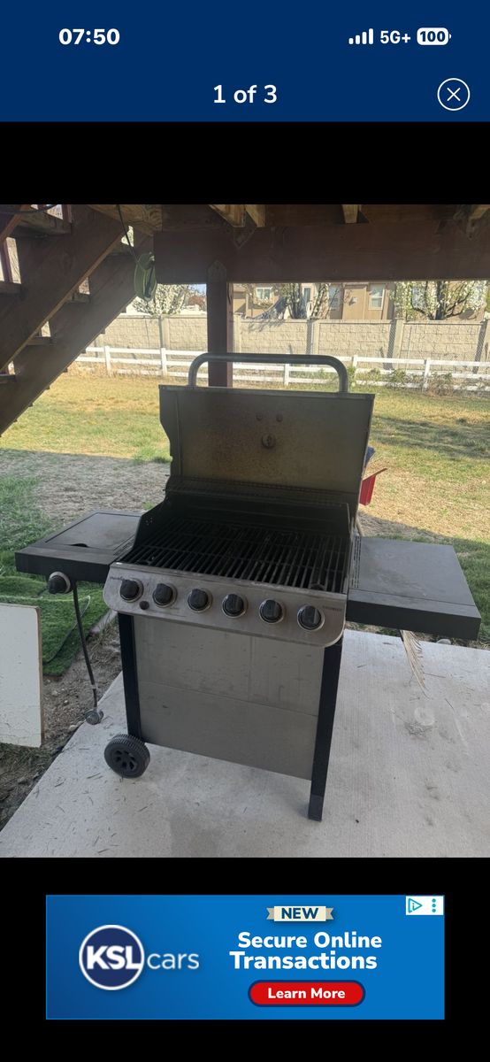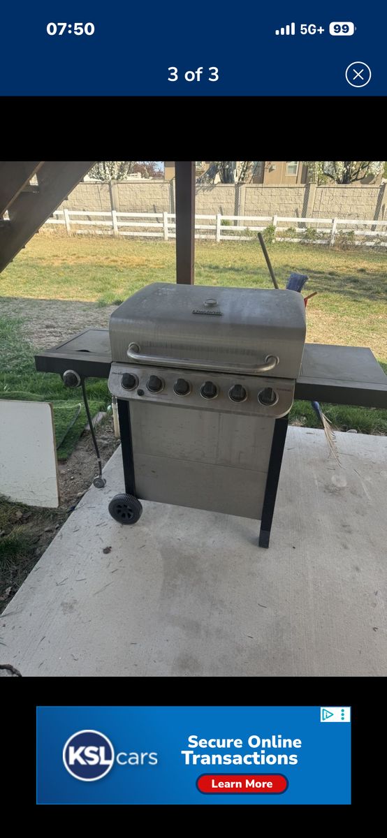 I have for sale a used barbecue grill. The grill is in very good shape, it’s about three years old, works perfectly, just needs a little cleanup. The grill has been in a covered environment. It’s entire life. Asking $65 or make an offer. Call or text Jim at 801-935-5692