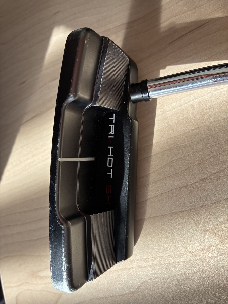 Tri-Hot 5K putters transform the performance of a blade with multi-material front loaded tungsten weighting that improves CG positioning while dramatically increasing inertia. This putter is equipped with two 25 gram adjustable weights and the OEM wide blade tri-hot head cover
