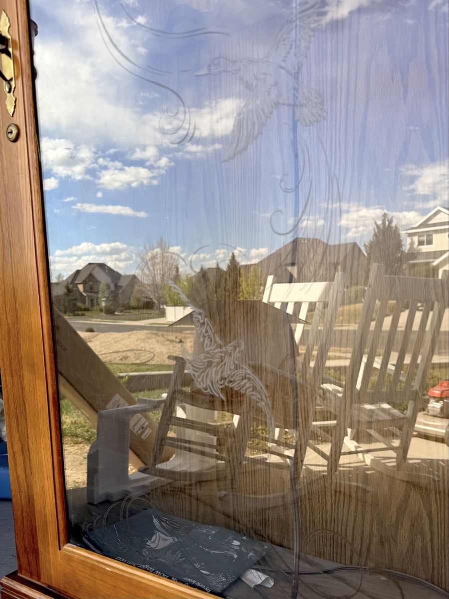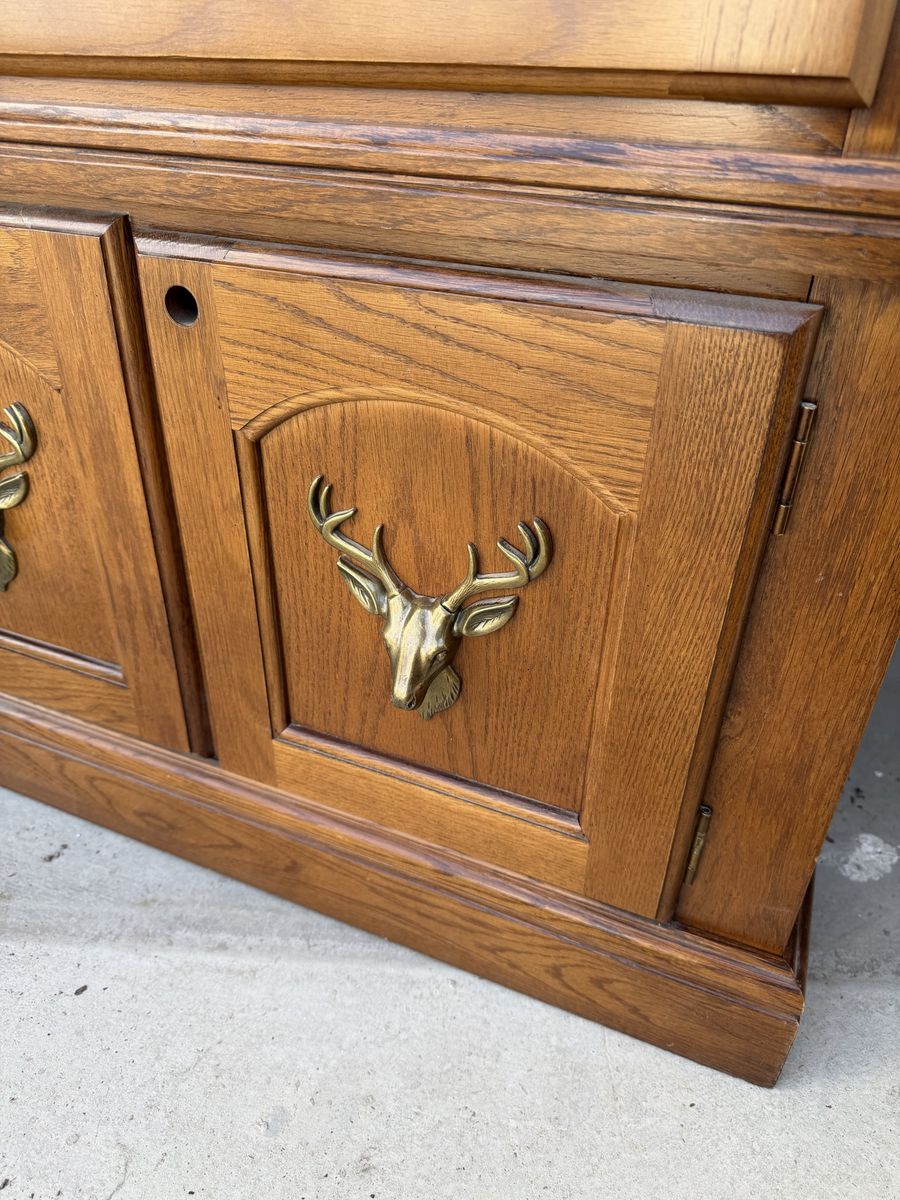 VenmoOak wood brass deer edged duck design on glass. Plugs in for light.