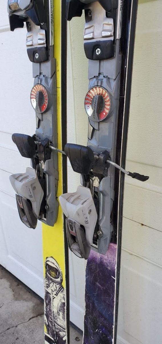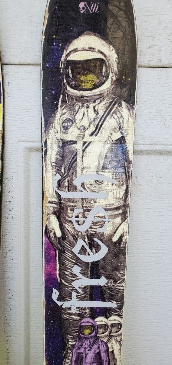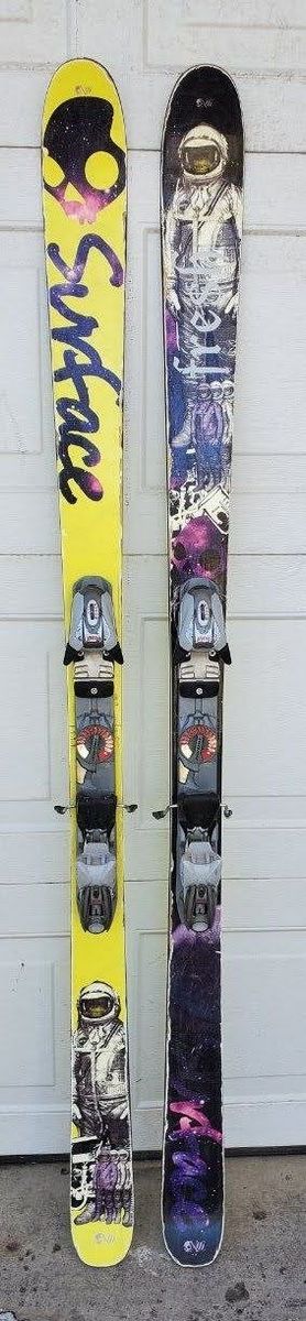VenmoGently used 174 cm Surface Fresh downhill Snow skis. Skis are in good condition. Top sheets have some wear on the side as seen in the pictures. Bases and edges are in good condition. -Marker M900 adjustable to your boot size bindings -Fun astronaut monkey graphics.on the topsheets