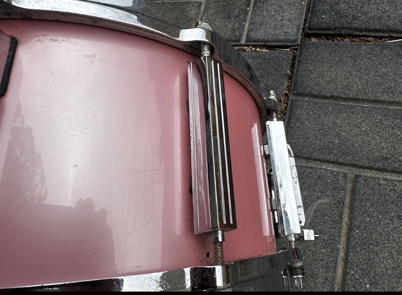 Has small holes drilled into the shell that wasn't in the original description when I bought it. Still sounds great just no need for it. Has new heads and wires on it. Remo Ambassador X on top, Evan's snare side on the bottom, and 30-strand PureSound wires.