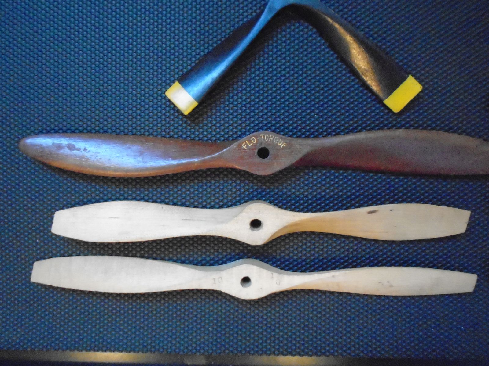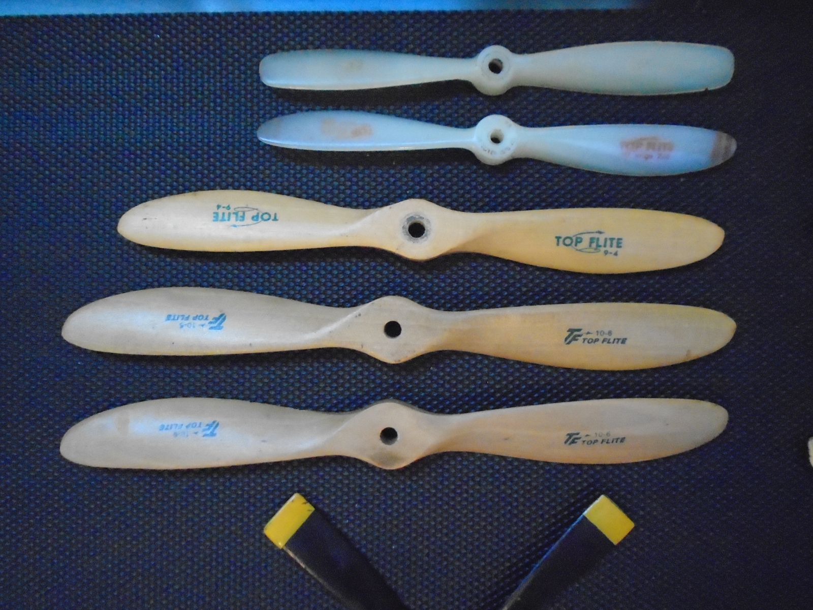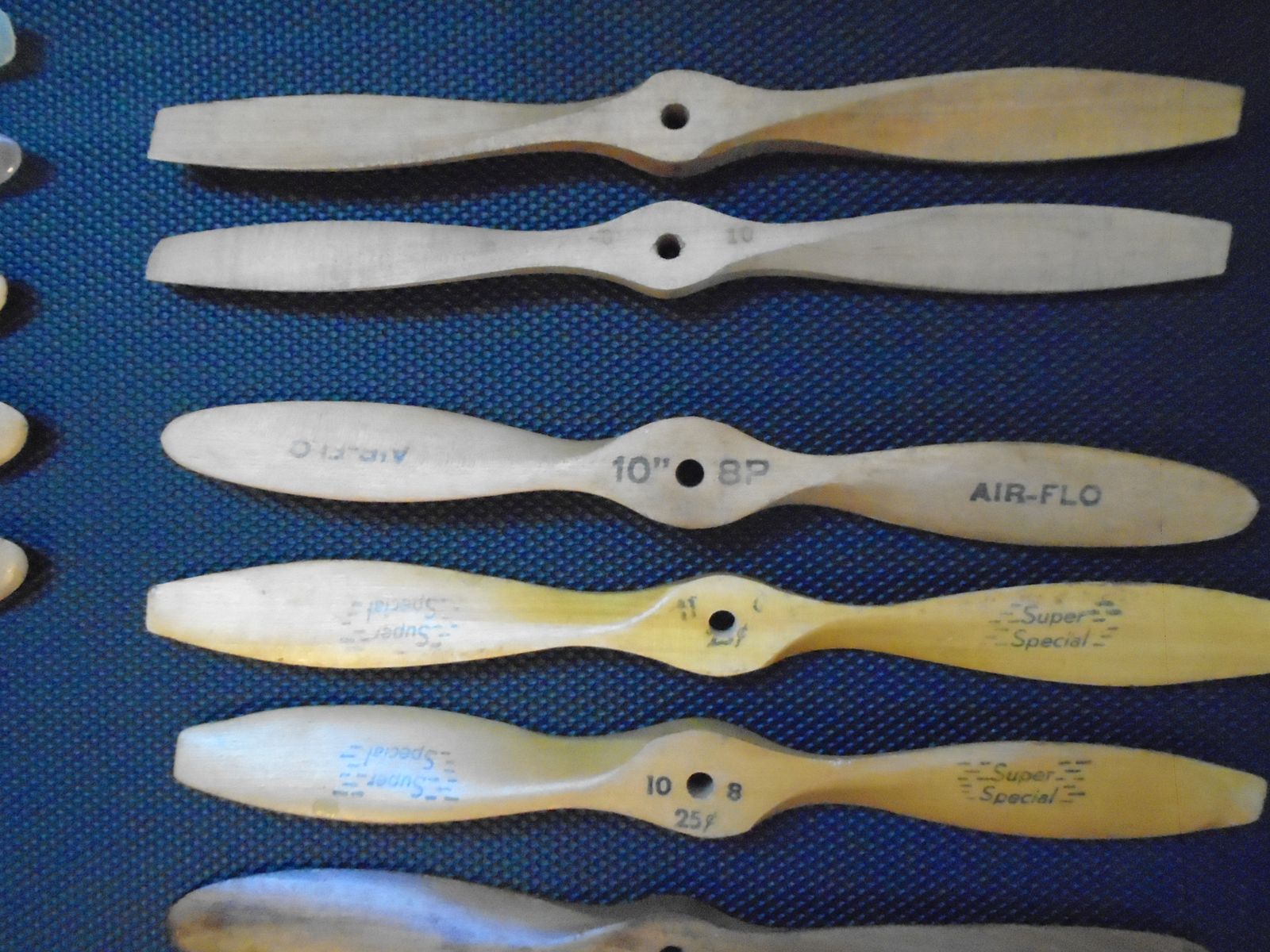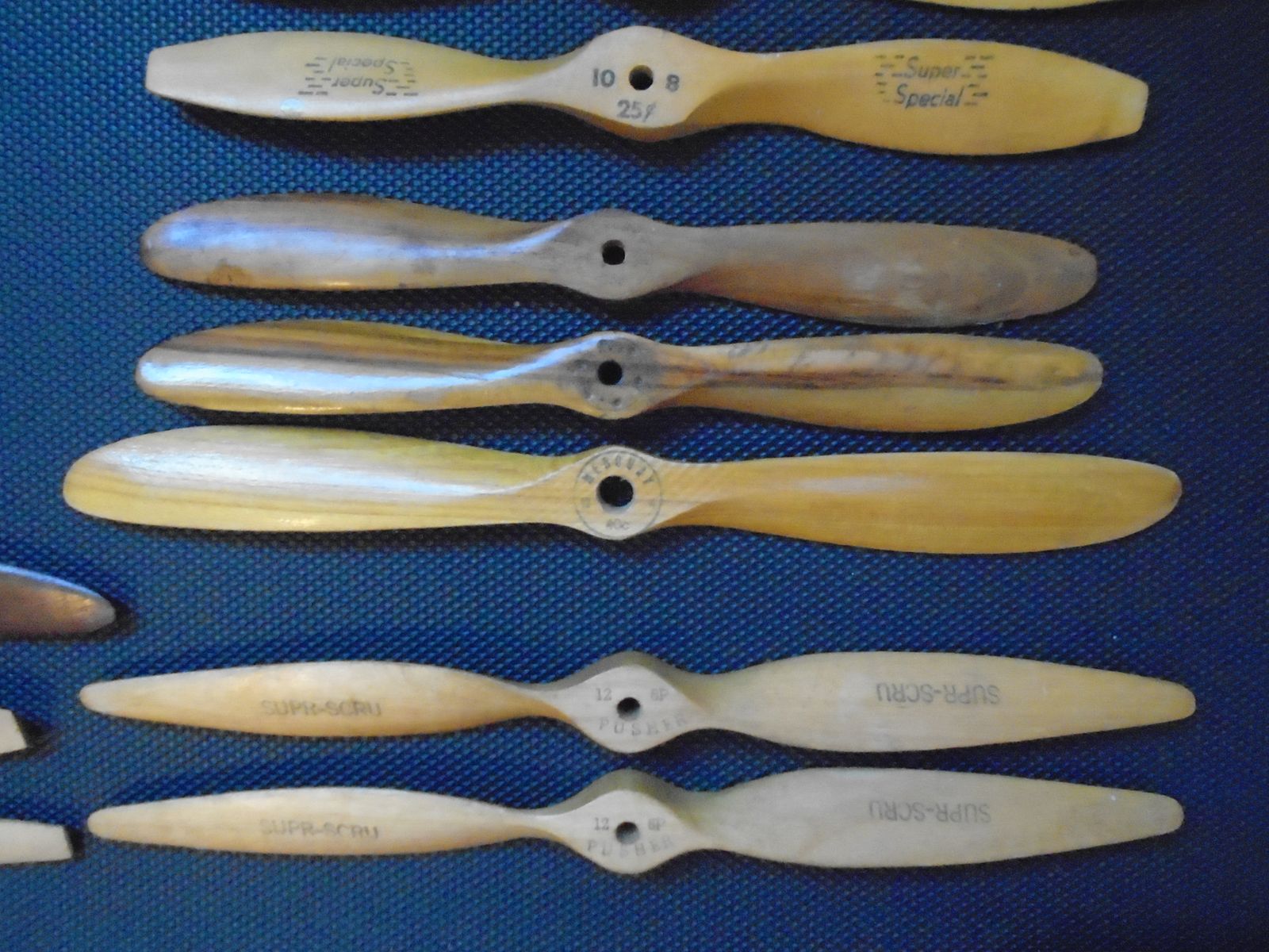 Lot of 19 new and used vintage RC Airplane wood (two are nylon) propellers. There are nine different brands and sizes range from 7" to 12". See photos.