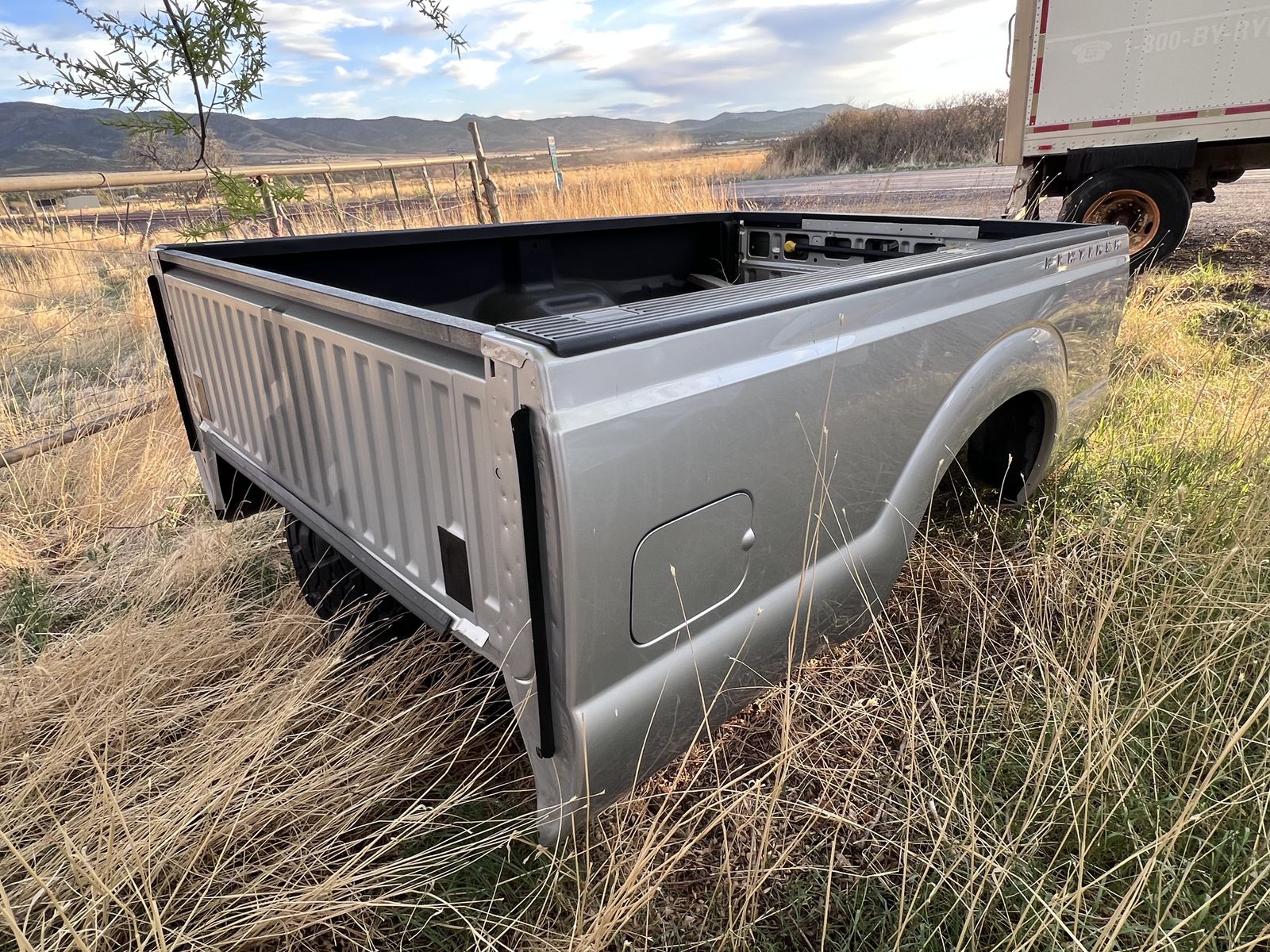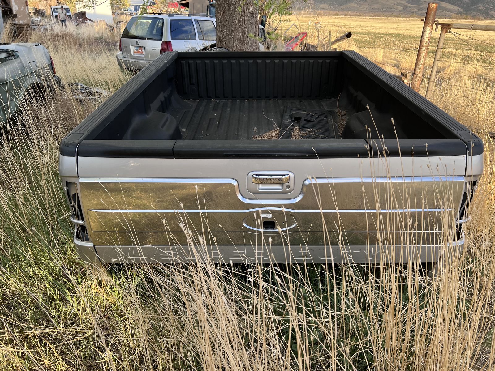 VenmoSelling a complete 8-foot long bed and Platinum trim tailgate off a 2015 F-250 Super Duty. Color is Silver. Both are in excellent condition with no major dents or rust. Included in sale: • 8ft Long Bed: Straight rails, excellent paint, and factory-style spray-in bedliner. • Platinum Tailgate: Features the sought-after brushed aluminum "Platinum" applique and integrated "man step." (Note: Backup camera, and wiring is not included; easy swap from your current gate). • Extras: Taillights, and fuel door included. This is a perfect "take-off" for a restoration or a high-end trim upgrade. These parts are getting harder to find in this condition, especially in silver. Located in Kanosh Pickup only. Bring a trailer and a couple of buddies to help load. Serious inquiries only.