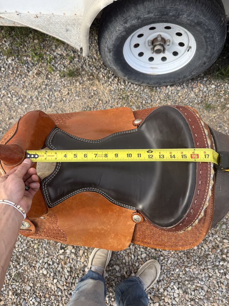 VenmoAmerican saddlery saddle, very good condition almost brand new. It’s still not fully broken in. Measurements are at the end of the pictures