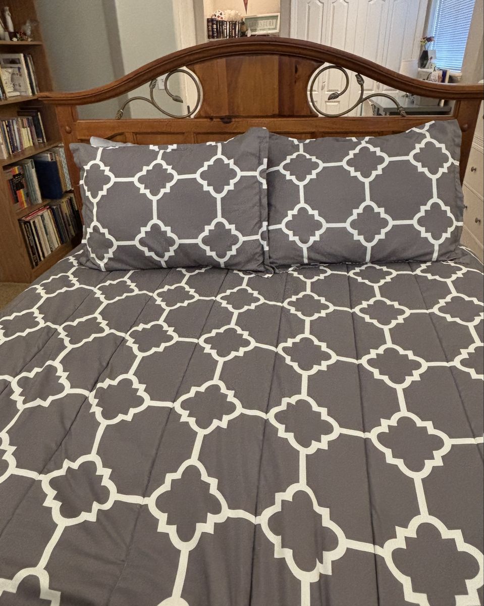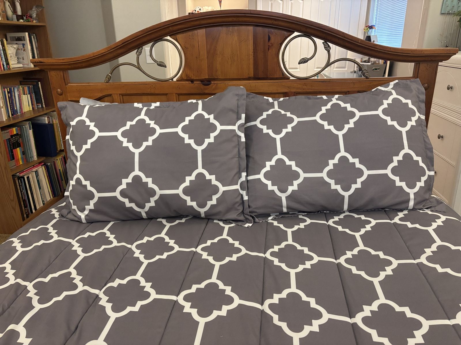 Queen size sold wood headboard. Beautiful detail and craftsmanship. Also comes with queen size box springs.
