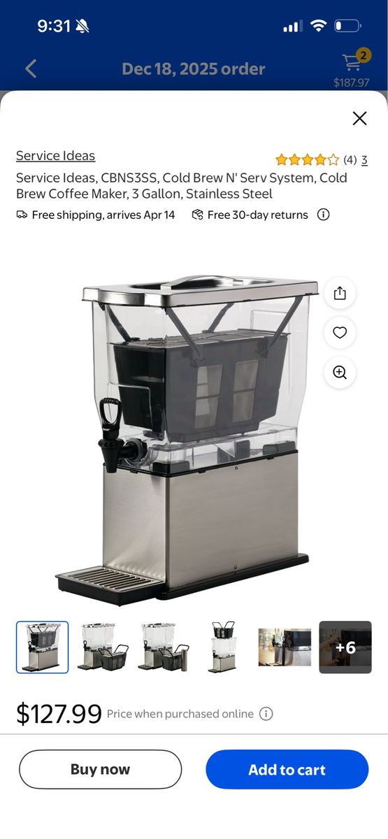 Venmo3 gallons of cold brew, ice tea, infused water. Great for get together and events. Way too much just for me. Used it a handful of times. Works great.
