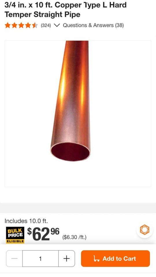 3/4 ×10ft type L copper pipe. $40 each. 7 available.