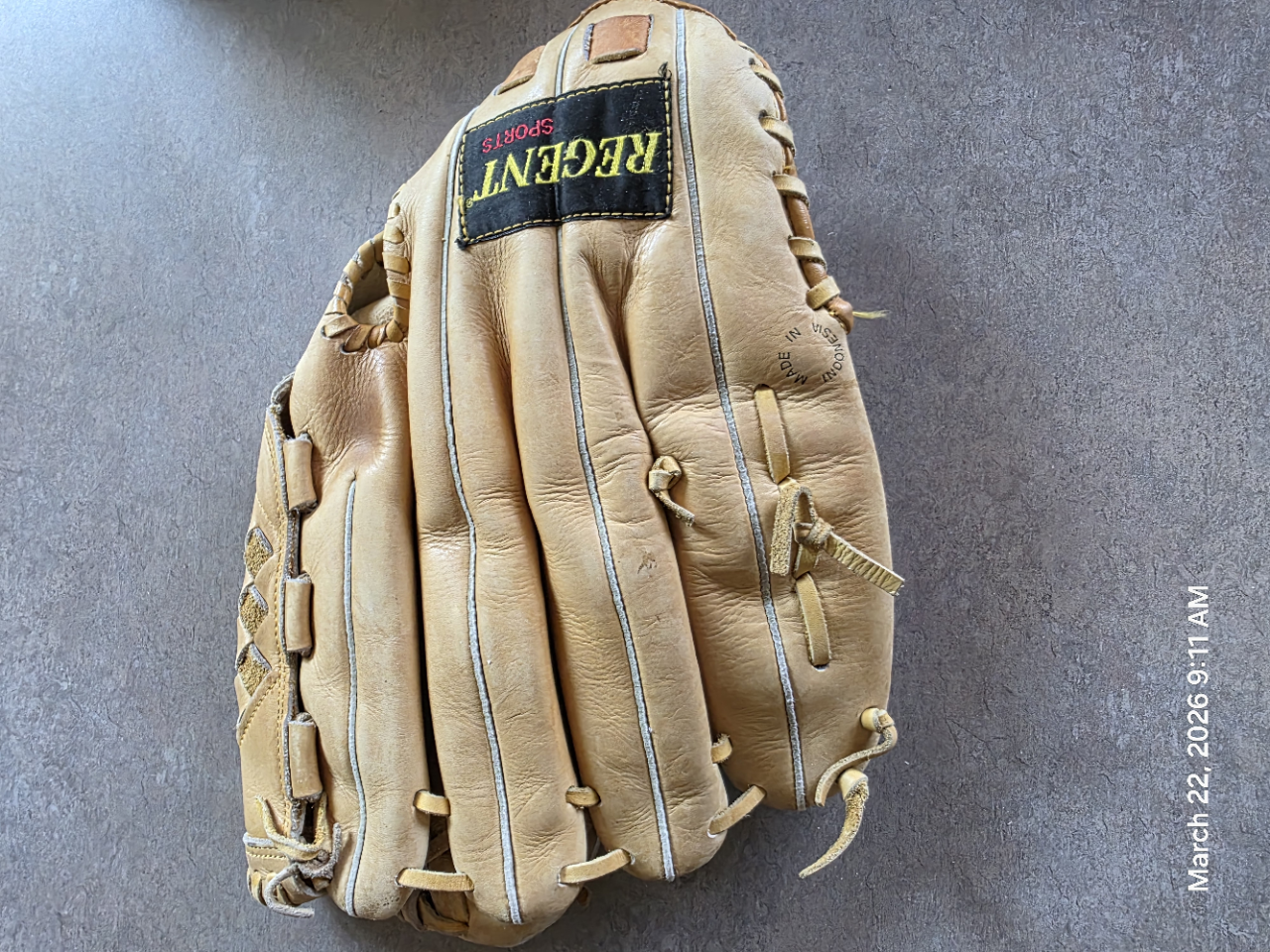 REGENT SOFTBALL GLOVE RIGHT HAND THROW This Regent Big Man Classic Model 07980 Baseball Softball Glove is perfect for any player looking for a high quality, RH glove, It is suitable for both baseball and softball, making it a versatile option for any player. Well built top grain cowhide in great condition.