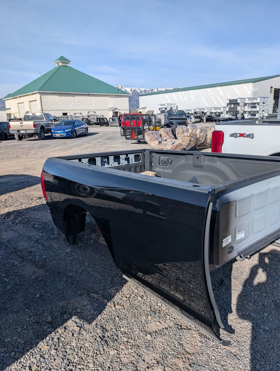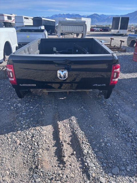 2025 DODGE RAM 3500 SINGLE LONG LARIAT SPORT BLACK TAKE OFF TRUCK BED. BED IS BRAND NEW, IT WAS REMOVED FROM TRUCK THE DAY IT WAS PURCHASED. COMES WITH PUCK SYSTEM AND REAR RECEIVER HITCH