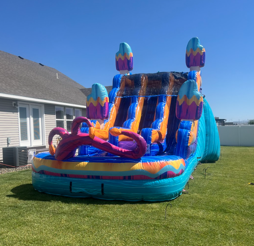 ApplePayBounce Party Utah is Box Elder County's #1 top-rated inftatable rental company with 20 different inflatables from obstacle courses, to bounce houses and 25-foot water slides, tables/chairs, snow cone, cotton candy, popcorn, games, dunk tanks and foam parties.