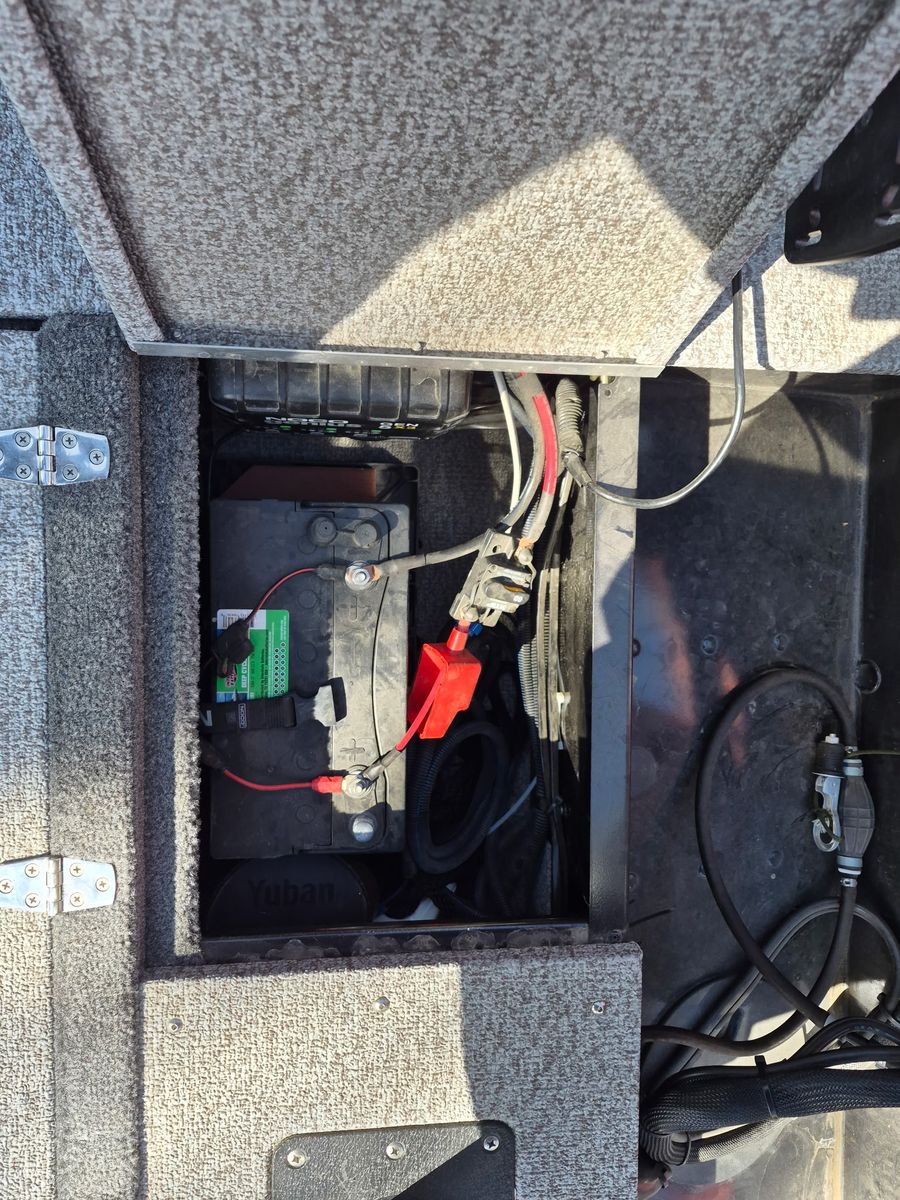 Comes with 2 hummingbird fish finders, trolling motor, with handheld remote and GPS position anchor. Lots of extras a must see to appreciate.