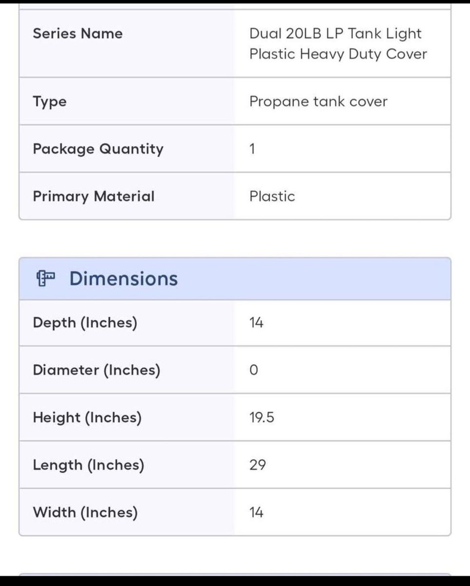 VenmoPropane cover for 2- 20 lbs tanks. dimensions in pictures. $20