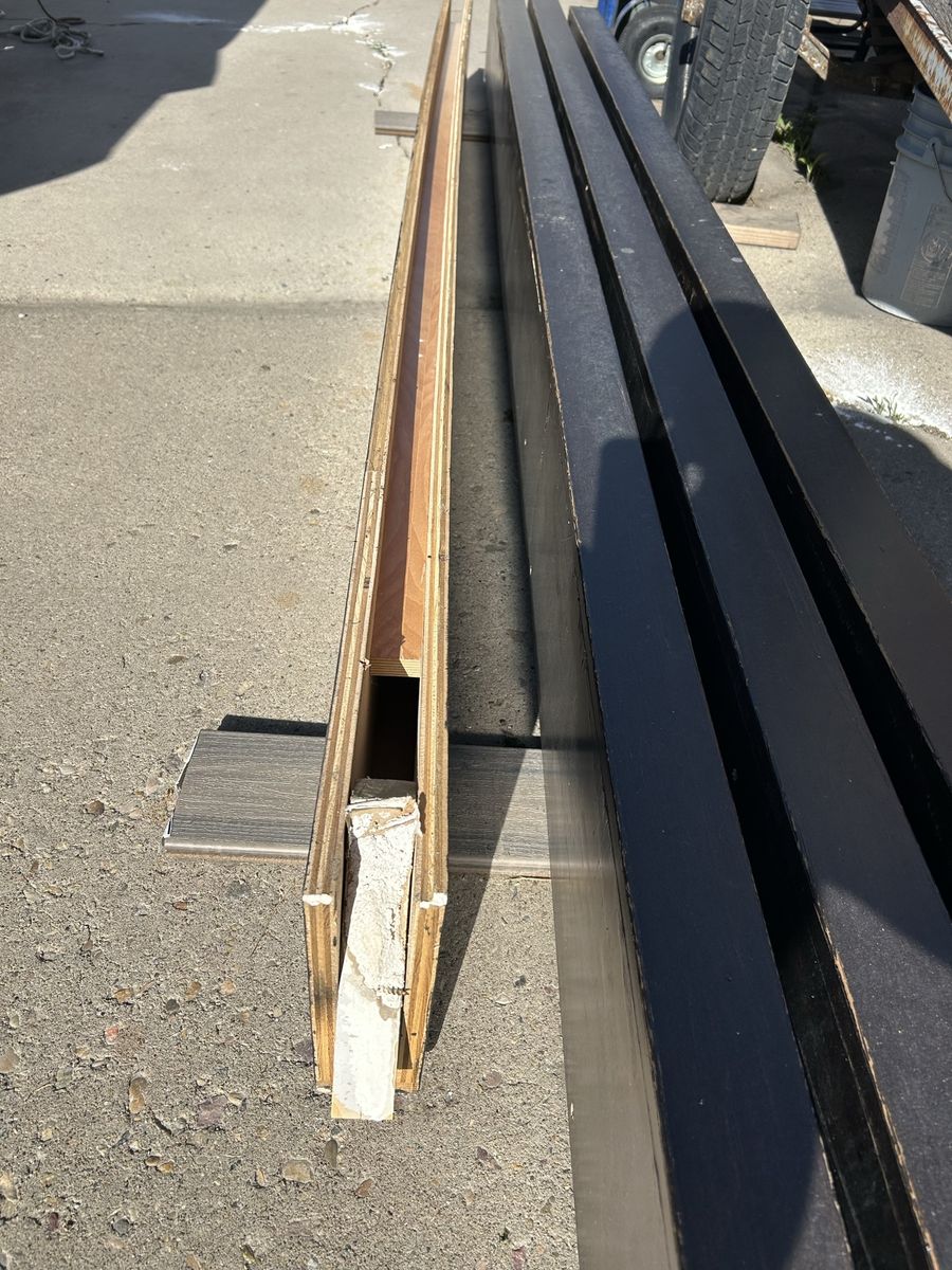 3” Three inch used floating shelves removed from project. Various lengths. 9 feet smaller one, 12 feet longest if the three others. Made with three-quarter inch finishing plywood. Great to cut down and make smaller shelves. No hardware included. The space in between the upper and lower fits a 1-1/2” inch 2 x 4, for referance info. I will sell them separately. $25 each. Cash only.