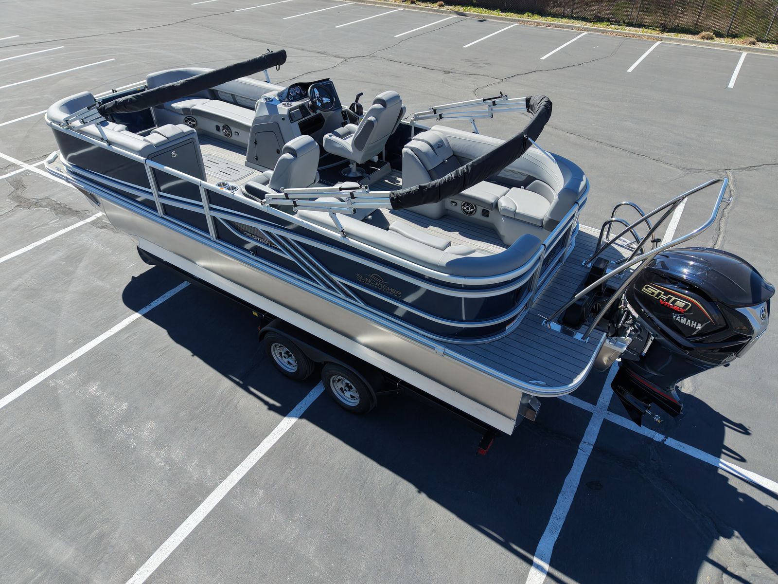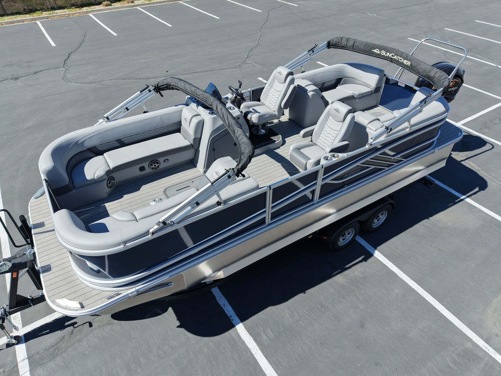 If you want a stylish tri‑toon that can cruise, entertain, and pull tubes all weekend, this 2026 SunCatcher Fusion 324RC is built for it—big footprint, comfy lounges, and proven Yamaha power on the back.