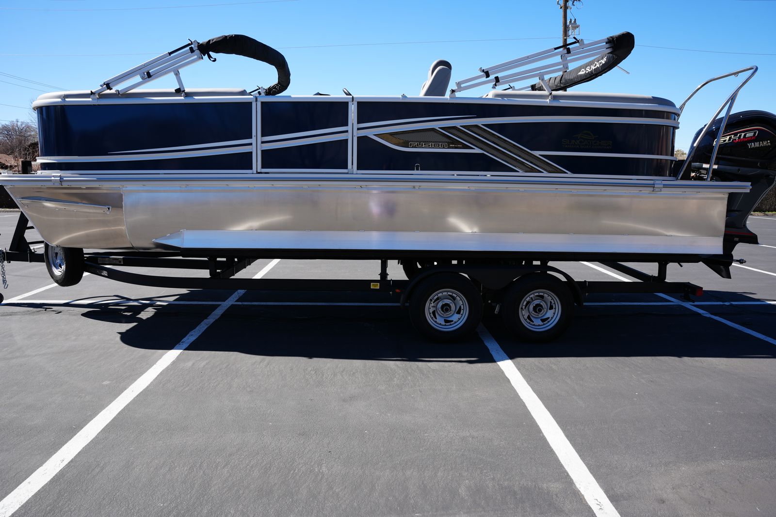 Fusion‑series pontoons have been hot—once people see the layout and finish in person, they don’t stay on the lot long.