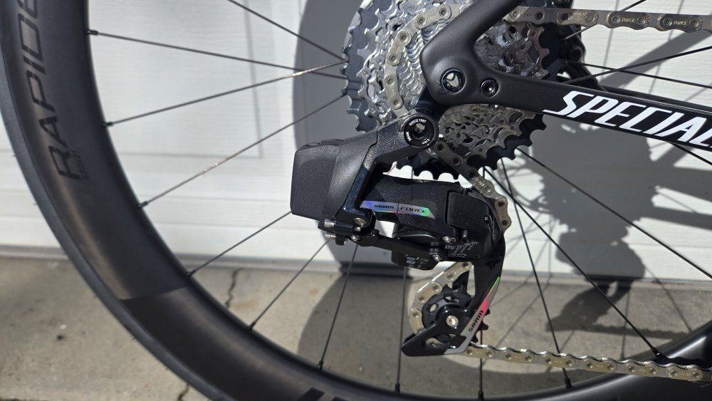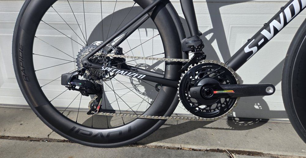 S-Works 12R Fact carbon frameset SRAM Force eTap AXS wireless drivetrain & hydraulic disc brakes Roval Rapide CL II carbon wheelset Roval Rapide integrated carbon cockpit Power Pro 3D-printed saddle
