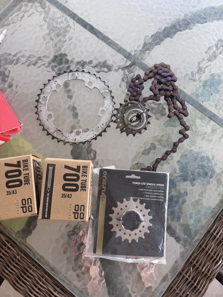 VenmoThis is mostly a custom build at this point. I listed all the parts below. This is a good commuter, bike or gravel bike. it is a size 55ish. Comes with parts to swap it to a single speed if you want to. Let me know if you have questions.
