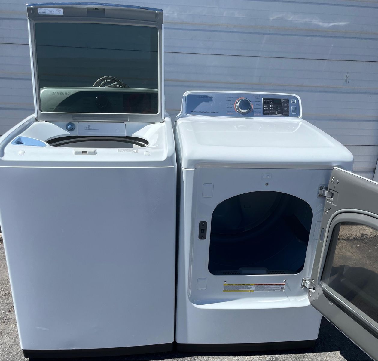 For sale a really nice and clean Samsung XL capacity electric set,both of this machines are in good condition and Work with no problems at all washer has heavy duty,water proof cycle etc dryer heavy duty ,bulky cycle etc feel free to call or txt with aqua questions (801)695-0314 I can deliver for free on the SLC AREA,thanks for looking.