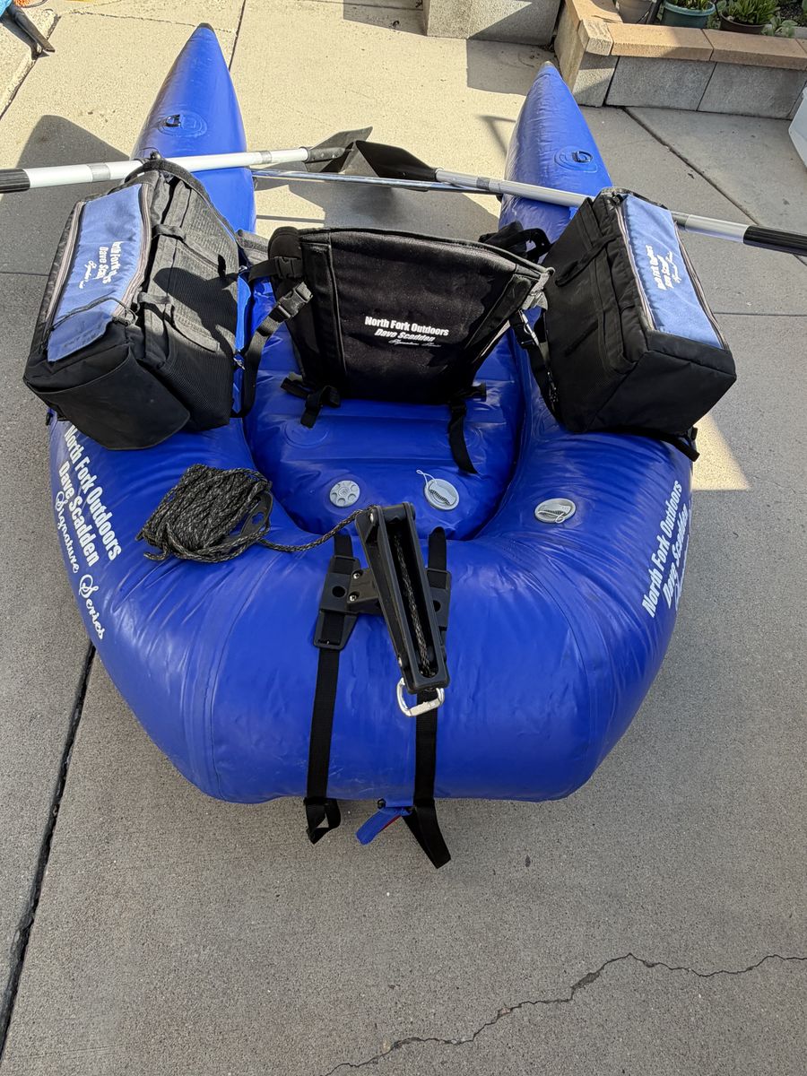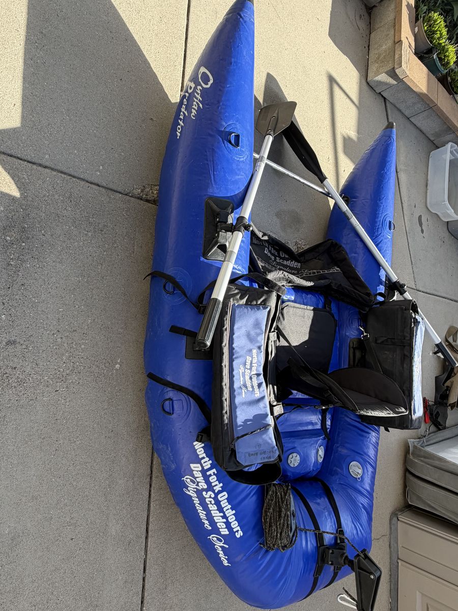 Frameless Outlaw Predator for sale. Like new, in excellent condition. Inflates to 8 feet, but deflated will fit in car trunk. Light enough @ 13 lbs. to carry to your favorite fishing spot. Has a Class 4 rapid rating. Includes: