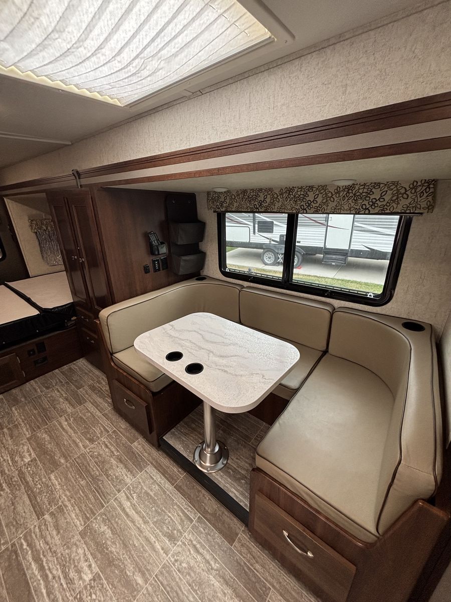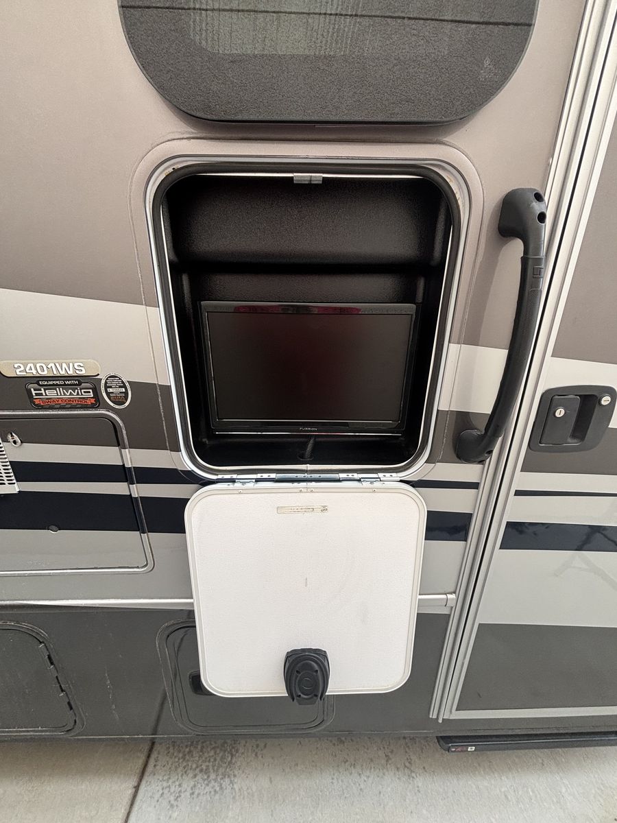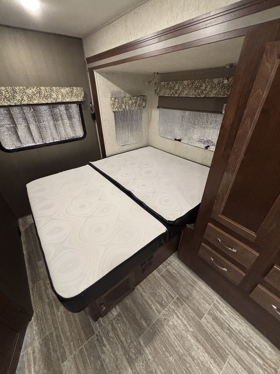 Also Includes: Day / Night Shades, Window Sunscreens, 3 TV's, Fiberglass Exterior, 1 Slideout, Single Slide topper, Roof AC, LP Gas Generator, Rear Queen Bed, Bunk Over Cab, Go Power 200 Watt Overlander Solar Pannel, Electric Step, Back Up Camera